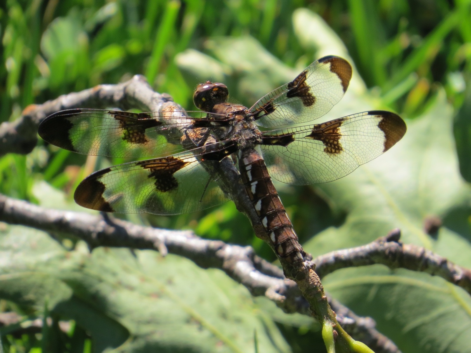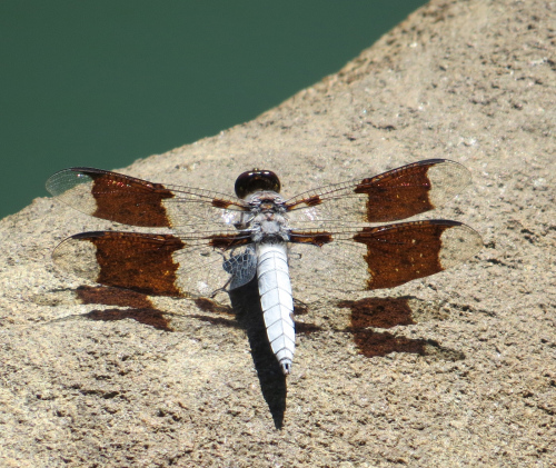 The male above is actually a young one. He won’t get his chalky white “tail,” or abdomen, until he gets a little older. When that happens, they do stand out. Here, from the archive of summers past, are some of the males in all their obviousness: