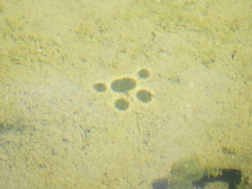 A living creature is behind this paw-like pattern, a shadow thrown through water. What do you think is going on here?