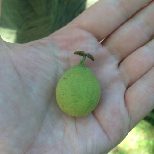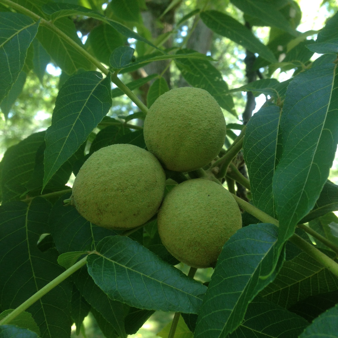 Baby, or perhaps teenage, black walnuts. Juglans nigra.
