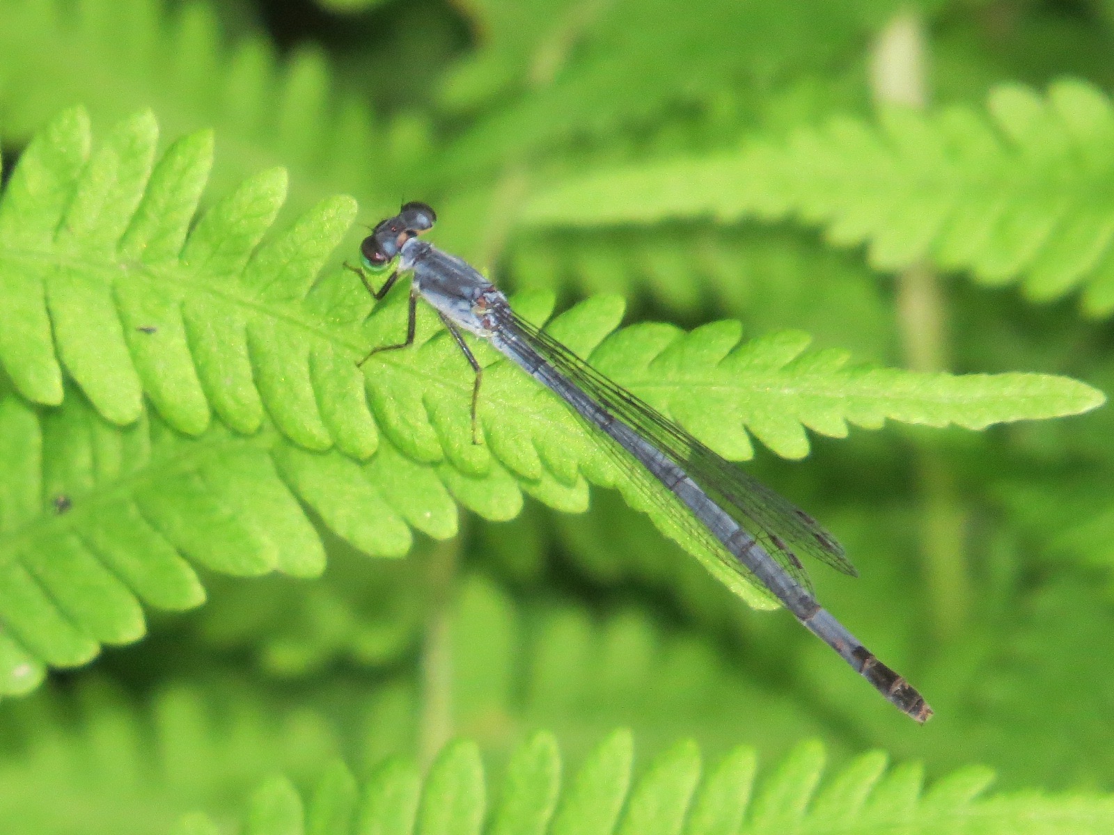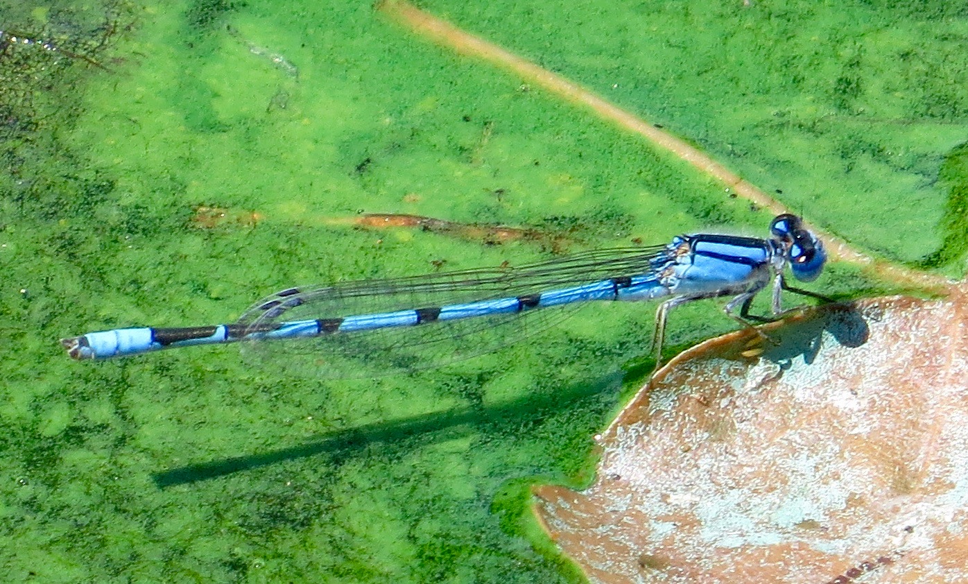 Sometimes, we must work with the image. This looks like a Stream Bluet (Enallagma exsulans), a new species for me. Only segment 9 is completely blue; the blue rings on the other abdominal segments are conspicuous. Plus habitat is a good tell: this the “most common species at running waters” says Ed Lam. Of, course there isn’t much running water in Brooklyn. I saw this one on the Cross River.