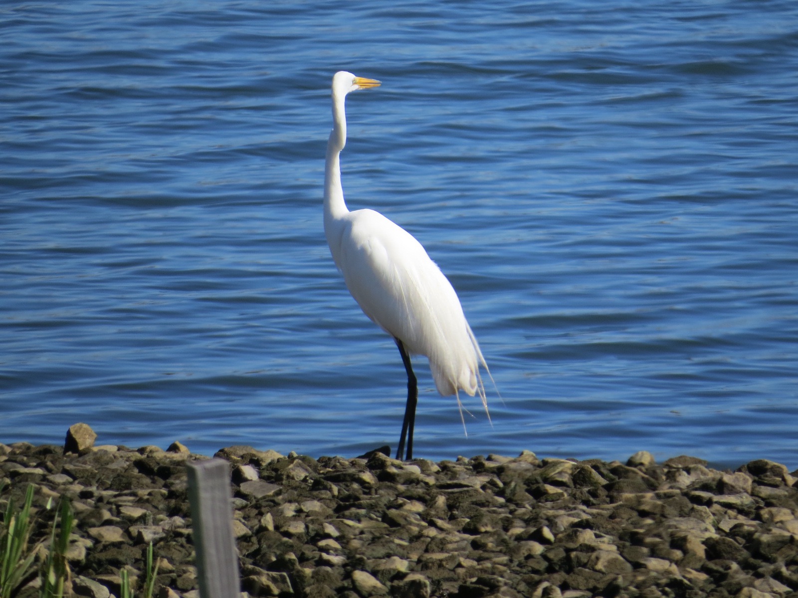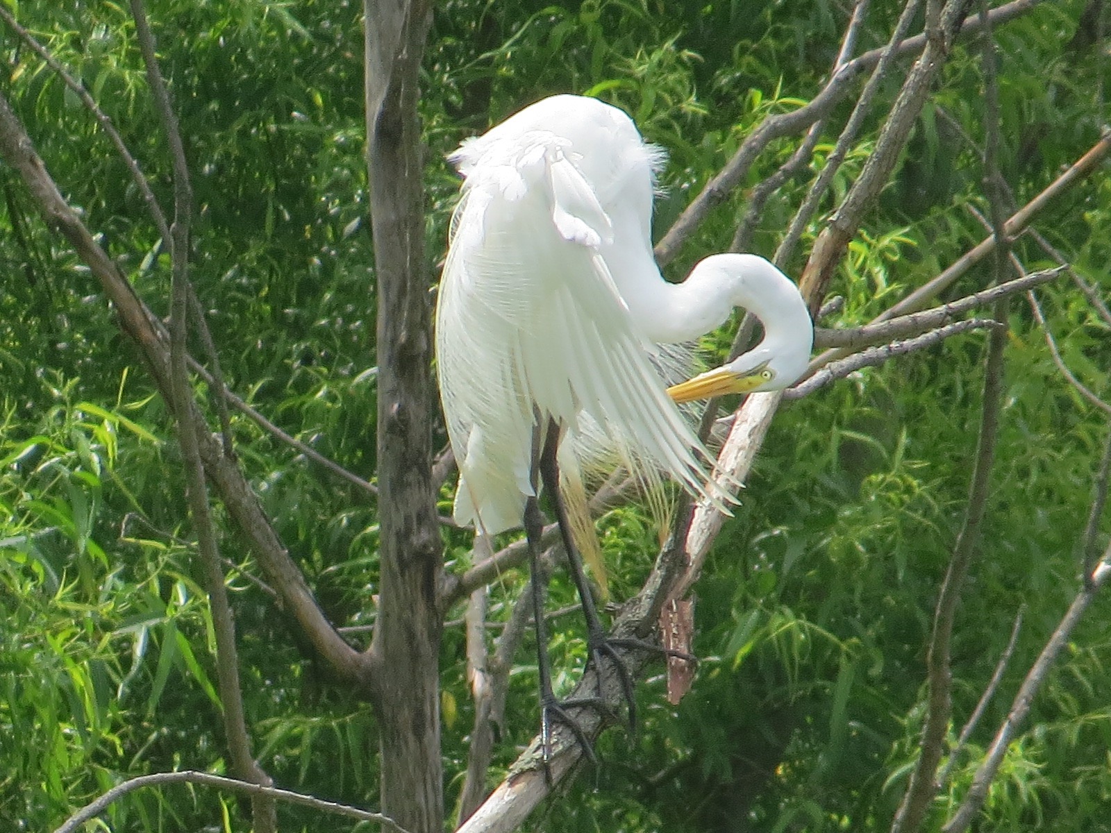 Black toes, yellow bill. White plumes once worth so much the birds were almost slaughtered to extinction.