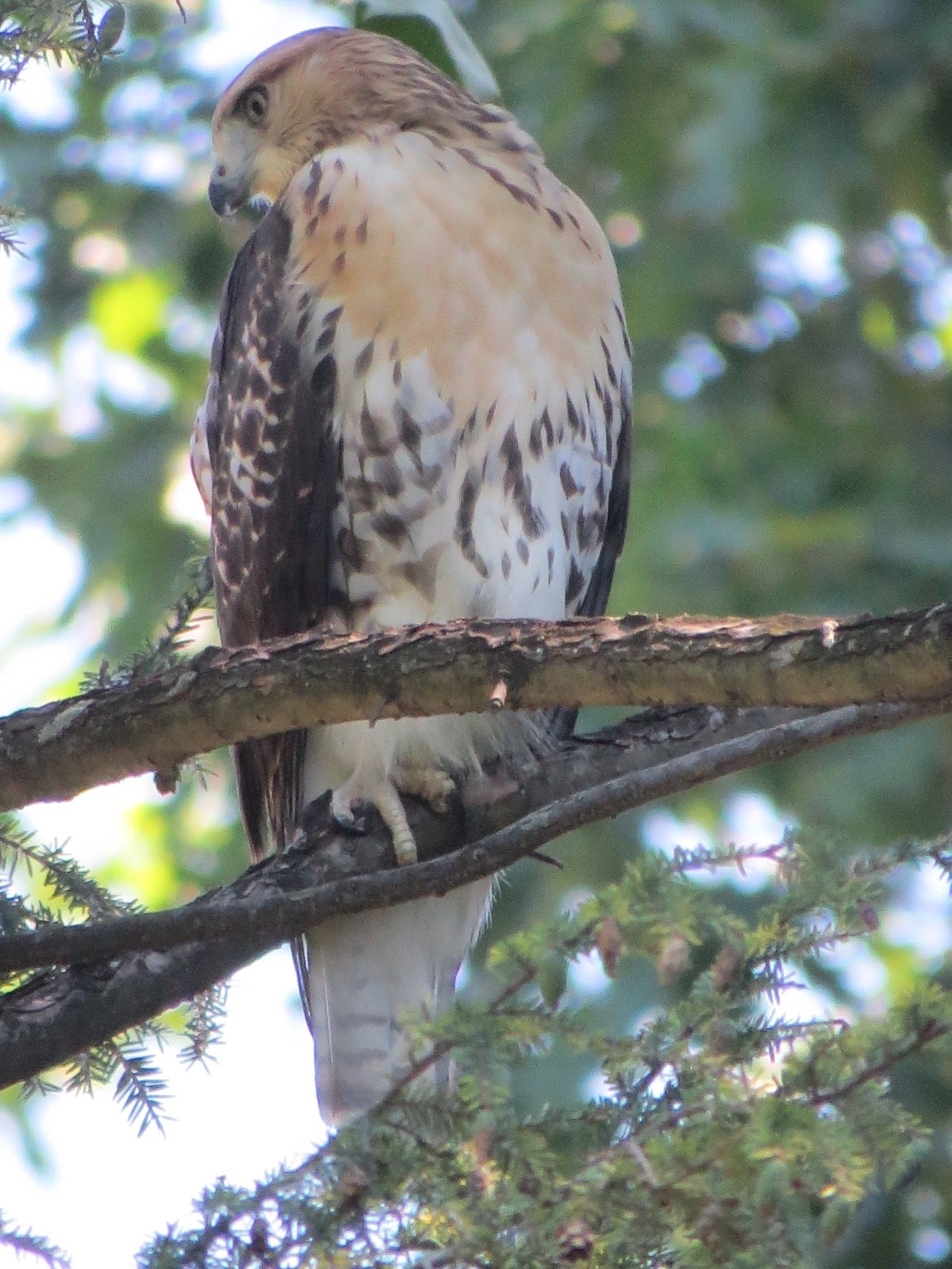 Young Red-tailed Hawks were being very noisy among the mature trees. When this one perched on the edge of the woods, the Robins, Catbirds, Blue Jays, Squirrels, Chipmunks, and all let up a hollering of their own.