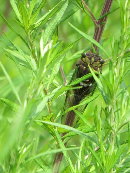 The Tibicen genus nymphs spend a few years underground sucking on tree roots. There are broods every year. They are not to be confused with the periodical Magicicada genus cicadas, who spend 17 years (13 further south) underground. Our last Magicicada apotheosis here was in 2013. Climate change, by the way, seems to be making the periodic nymphs lose count of the years: they are starting to break their ancient patterns and sporadically emerging early.