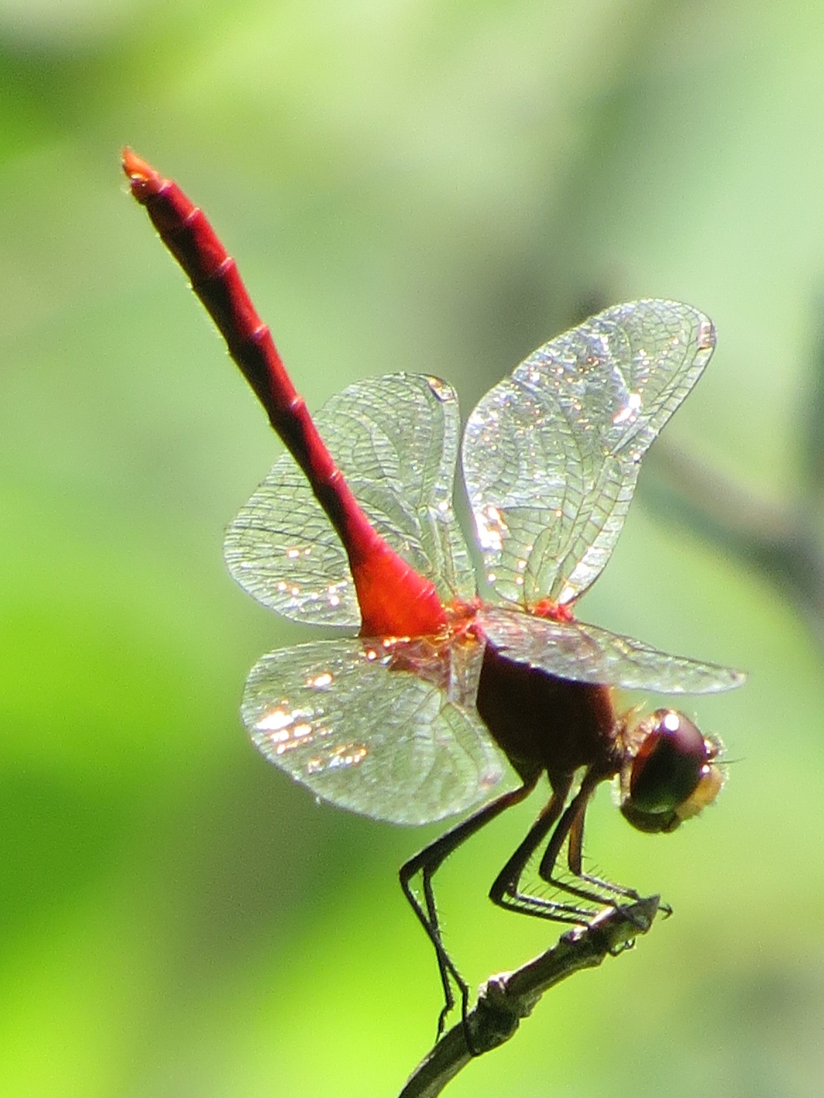 Obelisking meadowhawk of the Sympetrum genus. This abdomen-up position minimizes the amount of heat hitting the body.