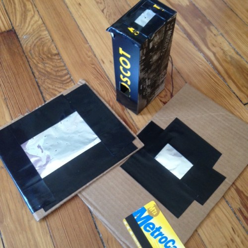 Remember not to look at the thing with your naked eyes! Put some clothes on ’em. I’ve been known to use the hole in my MetroCard to project the tiny image onto a business card. The hole in a MetroCard is rather bigger than a pinhole, but it still works.