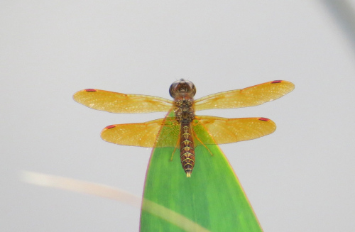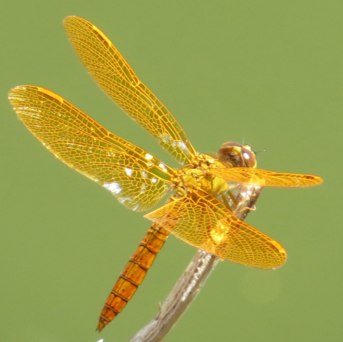 Mexican Amberwing (Perithemis intensa). Here’s our Eastern Amberwing (P. tenera) for comparison: