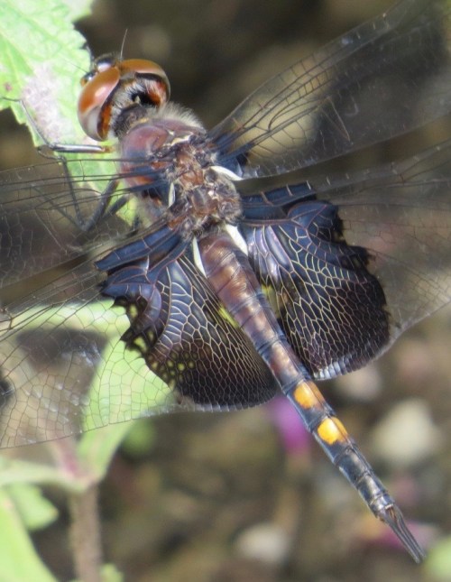 A closer look to examine the venation. There’s also a Carolina Saddlebags (T. carolina) in our parts, but it is seen with less frequency. On the Carolina, the saddlebags are red. The Black Saddlebags is one of the migratory species being tracked by the Migratory Dragonfly Partnership.