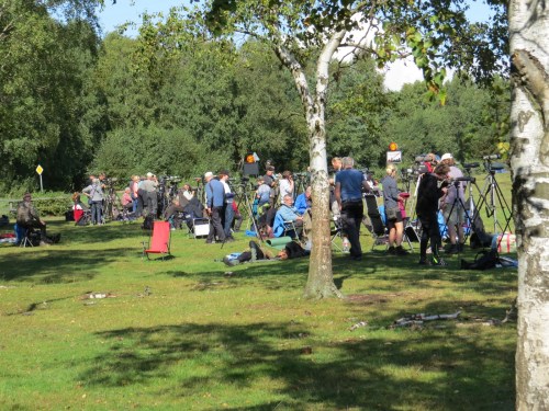 Other species in order of frequency: Marsh Harrier, Common Buzzard, Honey Buzzard, Osprey, and Red Kite. We also had single sightings of Peregrine, Hen Harrier (now split from our Northern Harrier), and Pallid Harrier. That last was a scope-view as he hurried along off the coast. Such movement in the air! While weather bollixed much of the anticipated migration, we had one good day at the Skanörs ljung or heath preserve, where birder’s line up to see migrating raptors swirl up in kettles and/or coast along in their quest for the south. Birders there had spotted the Pallid Harrier first and gotten word to the also-crowded scene at the lighthouse, where we saw it, generally found further east, powering southwards.