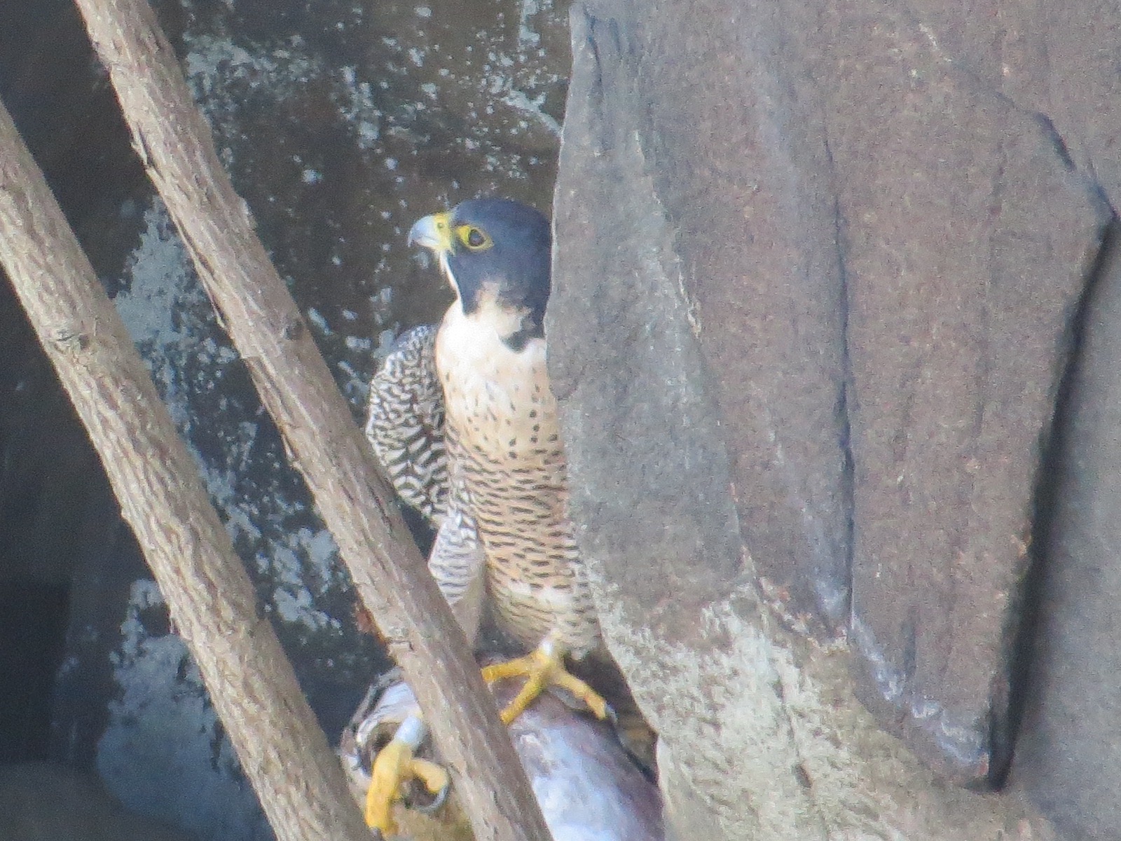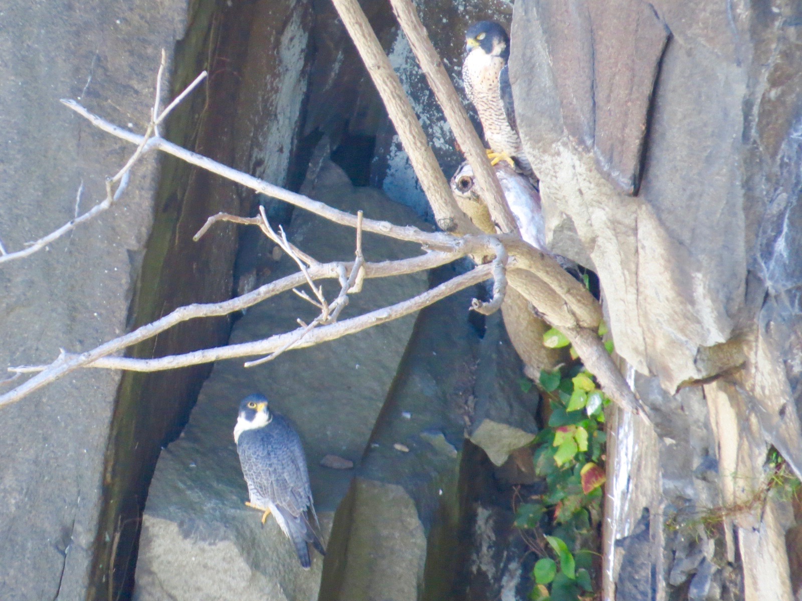 There are, in fact, a family of Peregrine living in the area. They were perched fairly close to the lookout. For someone used to seeing these birds on buildings and bridges, their relatively newly adopted habitat (cf. London), watching them perch on their age-old cliff-face habitat was pretty special.