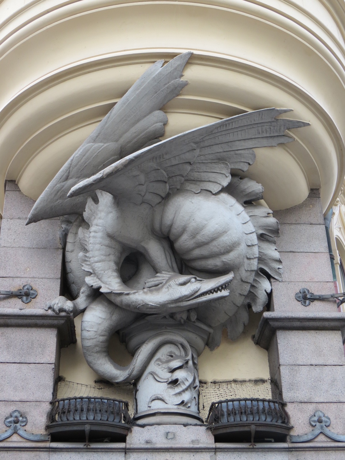 Four dragon tails curl into the spire at the old stock exchange in Copenhagen.