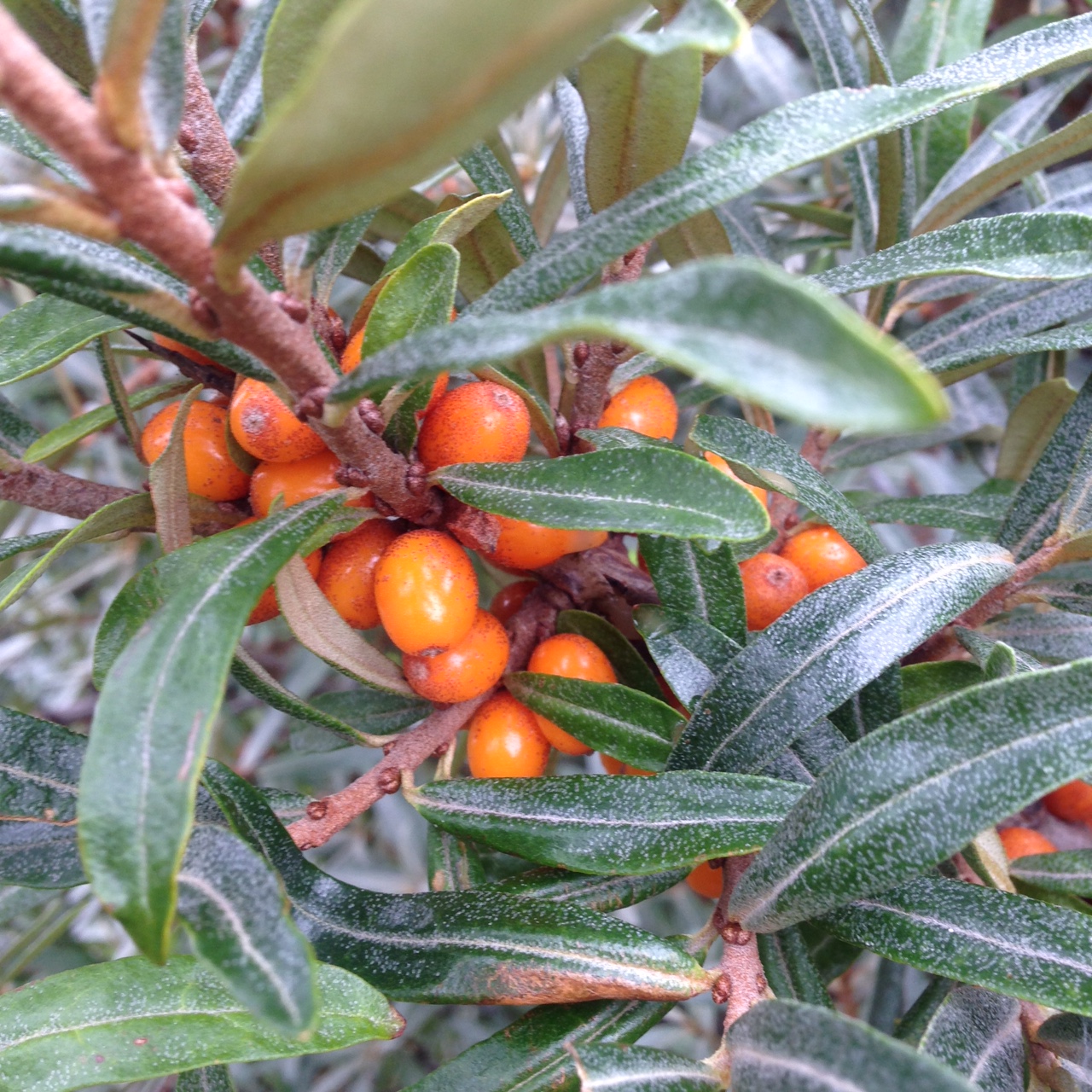 Havtorn in Danish and Swedish. Seathorn, Seaberry, Sea Buckthorn, Hippophae rhamnoides. Not a plant of Middle-Earth, evidently, which I find hard to believe. These berries are edible and have a complex, appealing tartness, just thing for Hobbits, who are, as you know, tougher than they look.