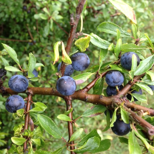 Here’s an instance: the name of the fruit of the Blackthorn (Prunus spinosa), the sloe, is from the Old English slah, plural slan. (Slan is the Swedish today.) This comes from the Proto Indo-European *sleie, meaning “blue, bluish, blue-black.” (The * before PIE words indicate that they are historical reconstructions by linguists.)
