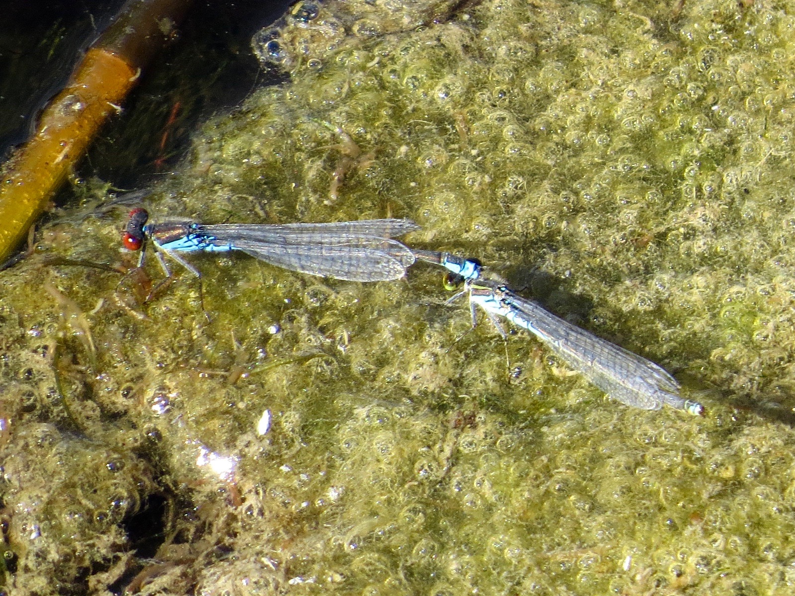 Found around the moat of the Kastellet in Copenhagen, where the word for them is Hedelibel, or darter. The following mating damselflies were spotted in the same placid waters: