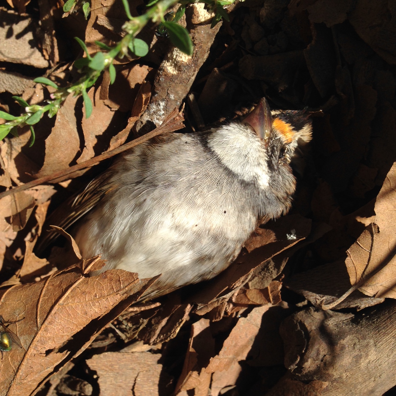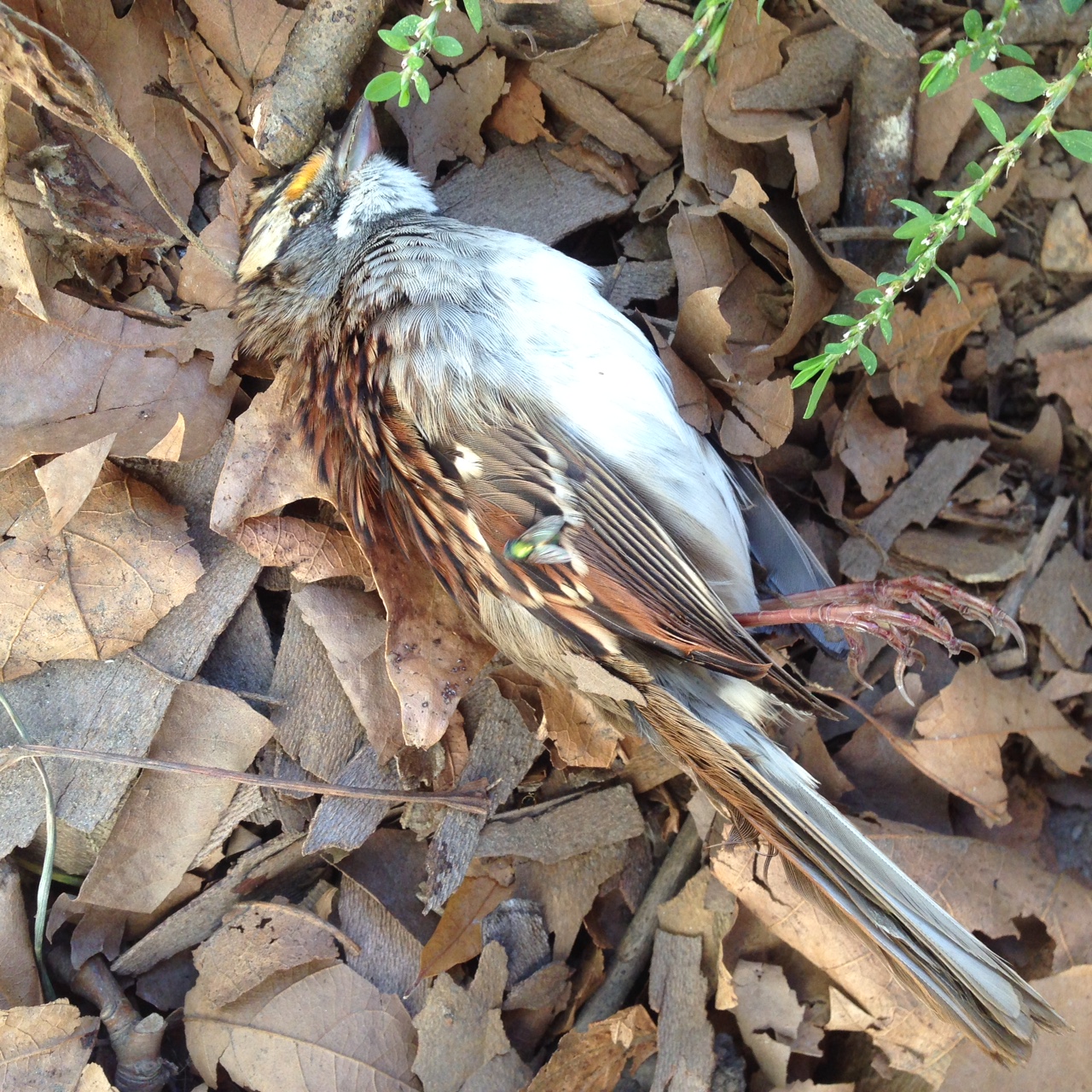 In NYC, dead birds can be reported to NYC Audubon. This database is intended to track window- and building-strikes. This bird was found in the middle of McGolrick Park, but I noted it anyway.