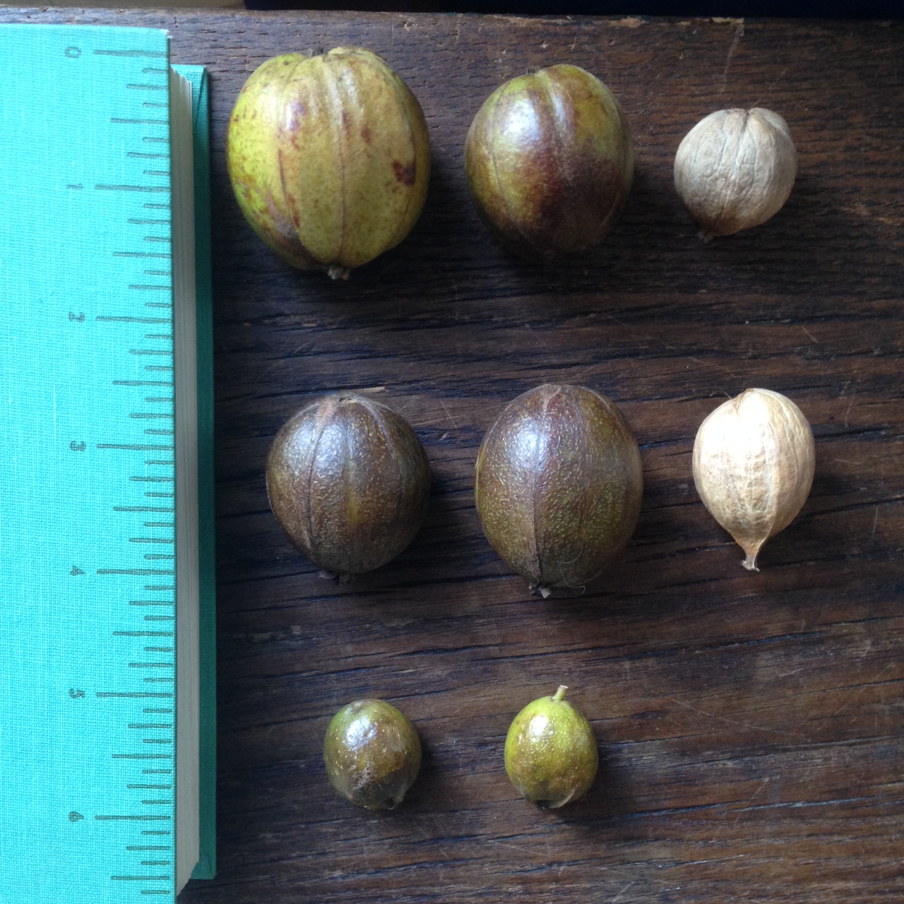 Incoming! The hickory nuts were falling the other day. The big ones and the little ones. This is a Bitternut (Carya cordiformis), at least according to its label, and the nuts, the smallest below, certainly look right for the species. These ricocheted and caromed off branches as they fell, a subtle drumming (I mean, for drumming).
