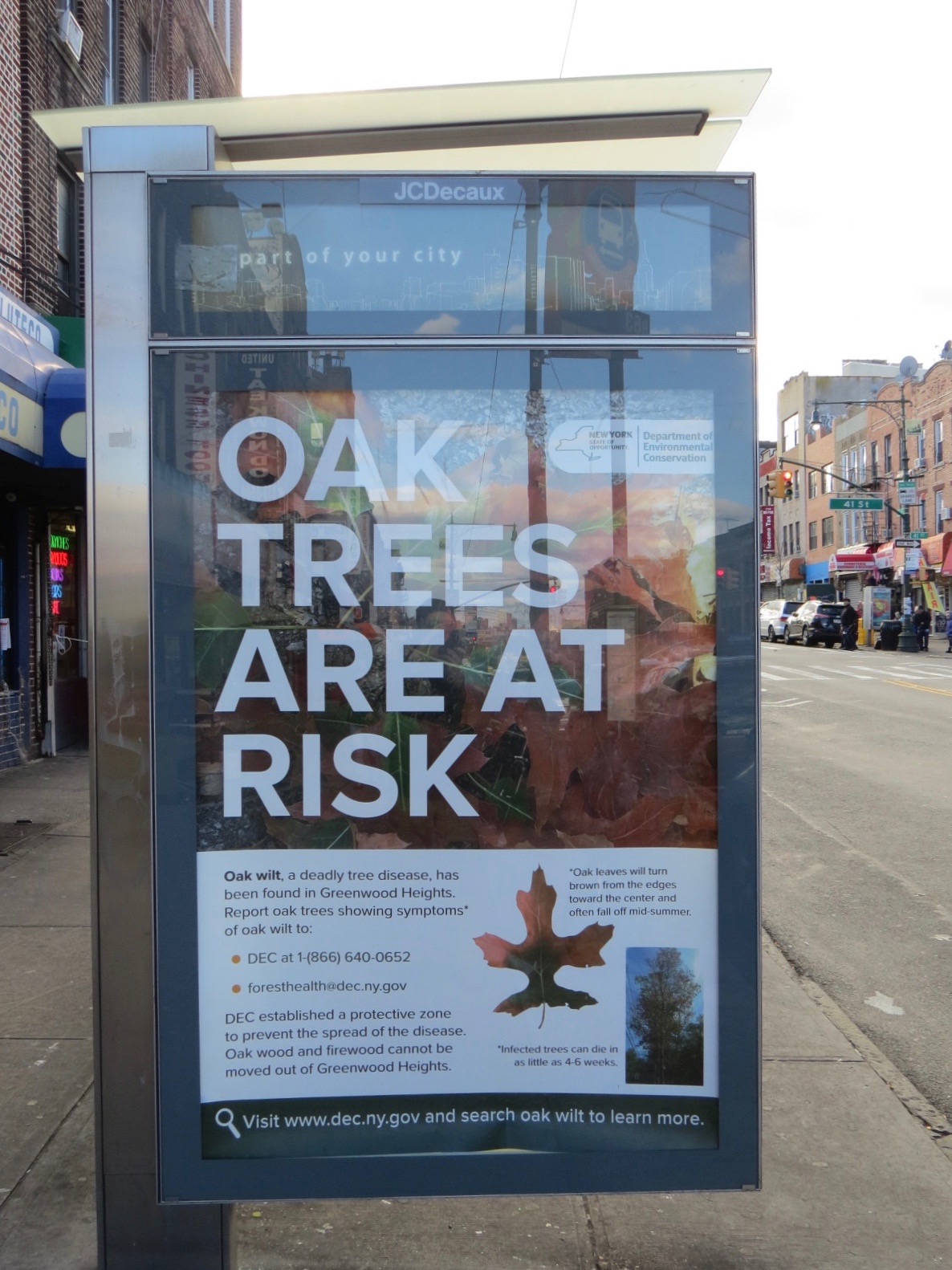 Greenwood Heights is located some twenty blocks away, tucked around Green-Wood Cemetery. There are plenty of oaks in Green-Wood, where the disease may have first been noted, as well as on the street. Here’s a relatively recent street tree planting showing that this fall hasn’t been a total wash: