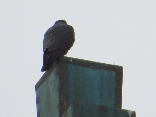 perched, perched until I got to 42nd St., the location of Mike’s Spike. I was aiming to get out front, that is, with the sun behind me. But the bird flew off as I made my way to 43rd St. Later in the day, however, the bird was back, as witnessed from the apartment. And has been spotted, if it’s the same one, thrice since that day.