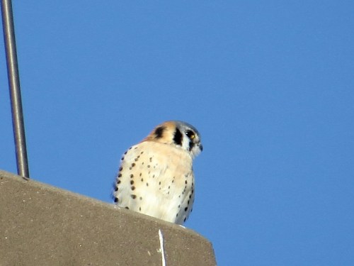 American Kestrel. This one was a long avenue block from the Green-Wood linden. The same male, I think, perched atop Sunset Park High School.