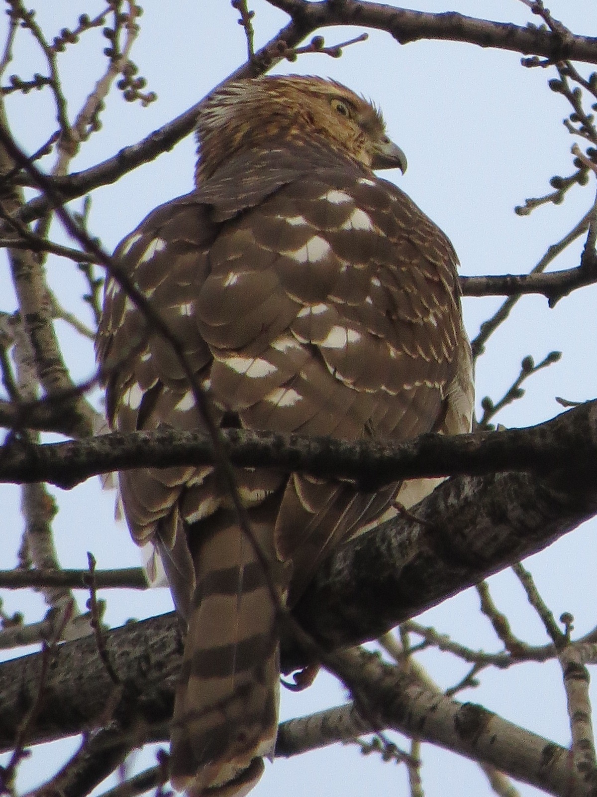 Over the past year, I tried to keep track of the number of raptor sightings I had here. When I started thinking about doing so in late 2016, one a day was the minimal count, and I wanted to see if that could be maintained. My total of 331 is obviously just slightly less than that on average. (I spent 49 or so of the year’s 52 weeks here in the city.) Closed curtains to block the sun, combined with breeding season (half of all birds at nest), meant summer had runs of several days without a single sighting. My best single day’s count was five, a record reached half a dozen times.