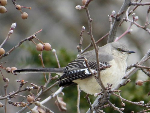 And who hasn’t felt the side-eye of a Northern Mockingbird greedily claiming all the little pears of winter?