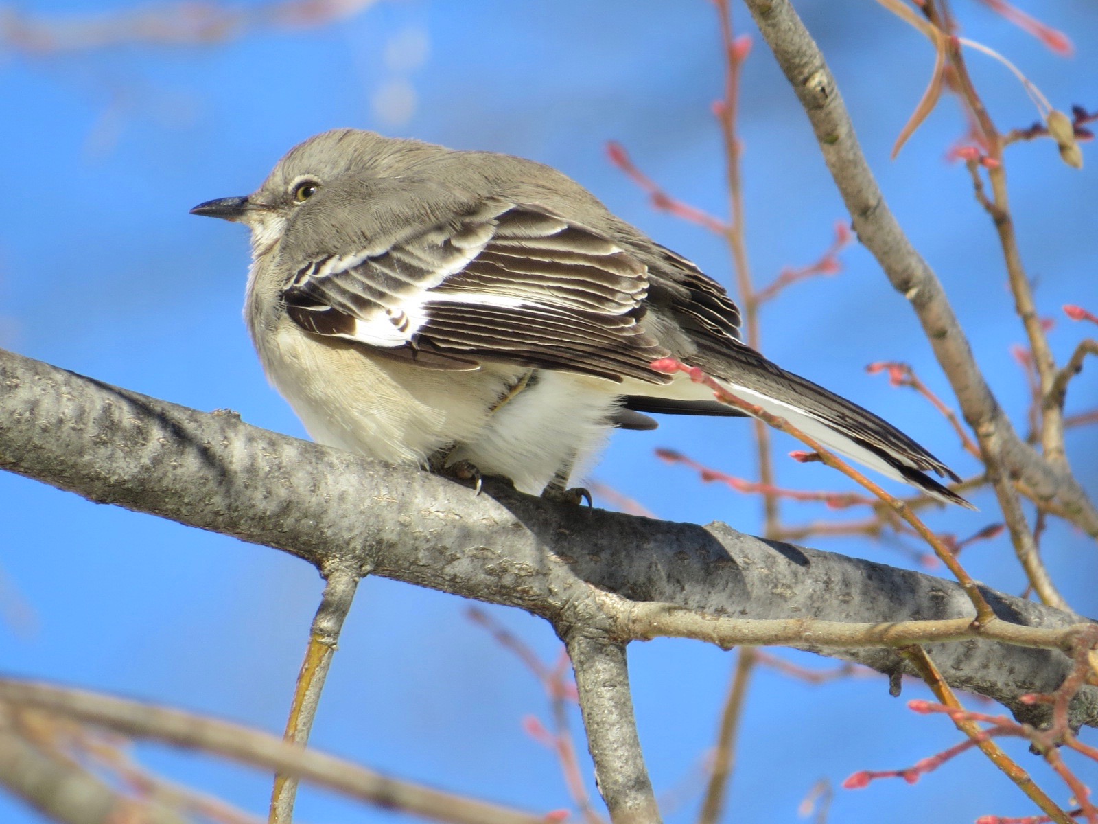 Different day, same patch. A different tree this time: those red linden branchlets! Same bird? In this case, it was much colder so there some puffed-up feather action here. Great insulation, feathers. I wore down myself yesterday.