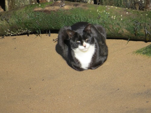 One of the many feral cats that infest the waterfront.This one wasn’t on the beach for a tan. I’ve never seen one try to take a duck, but I bet they try.
