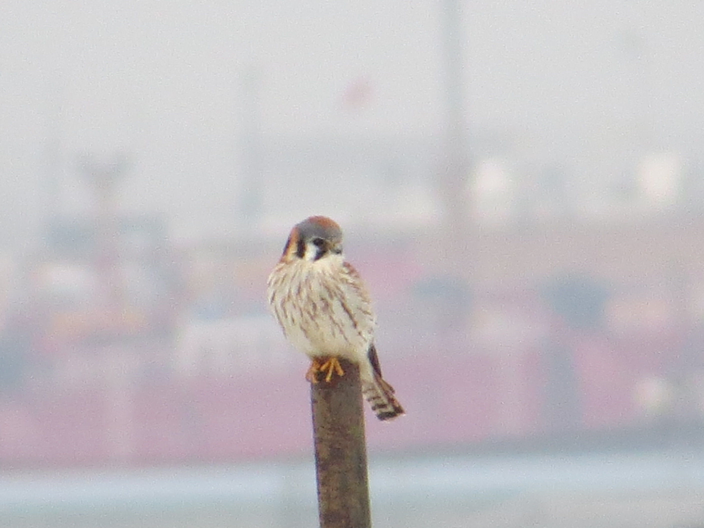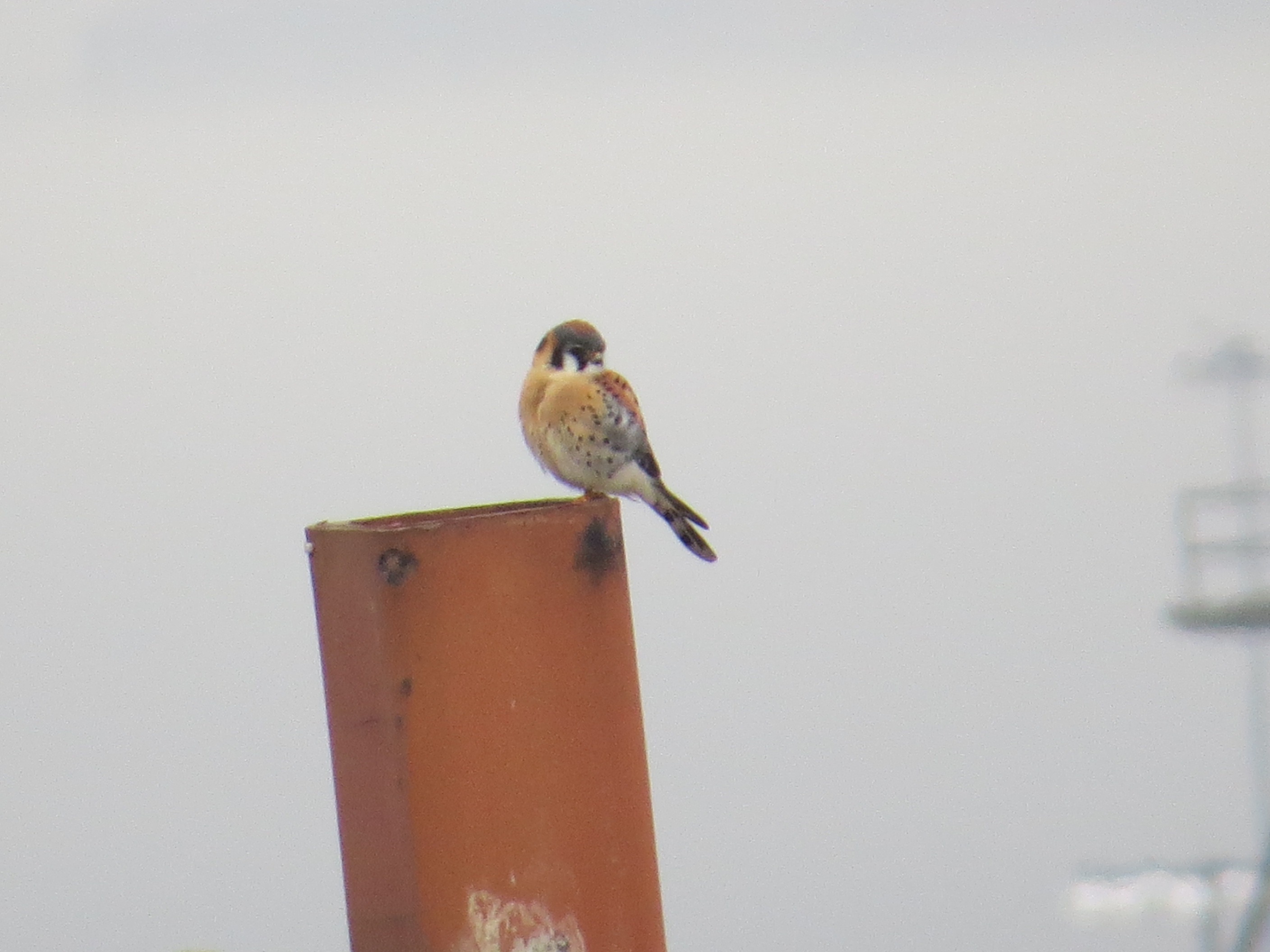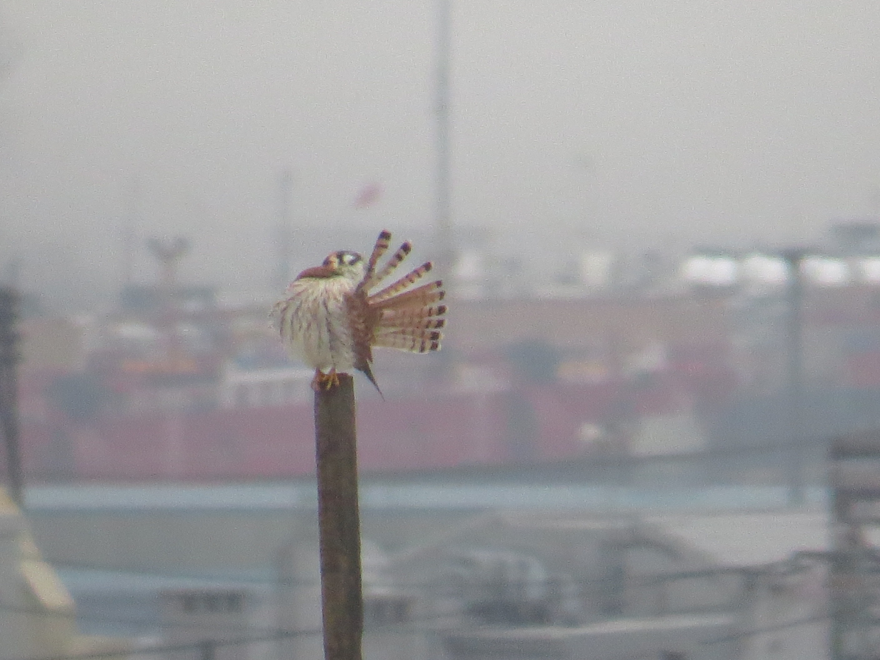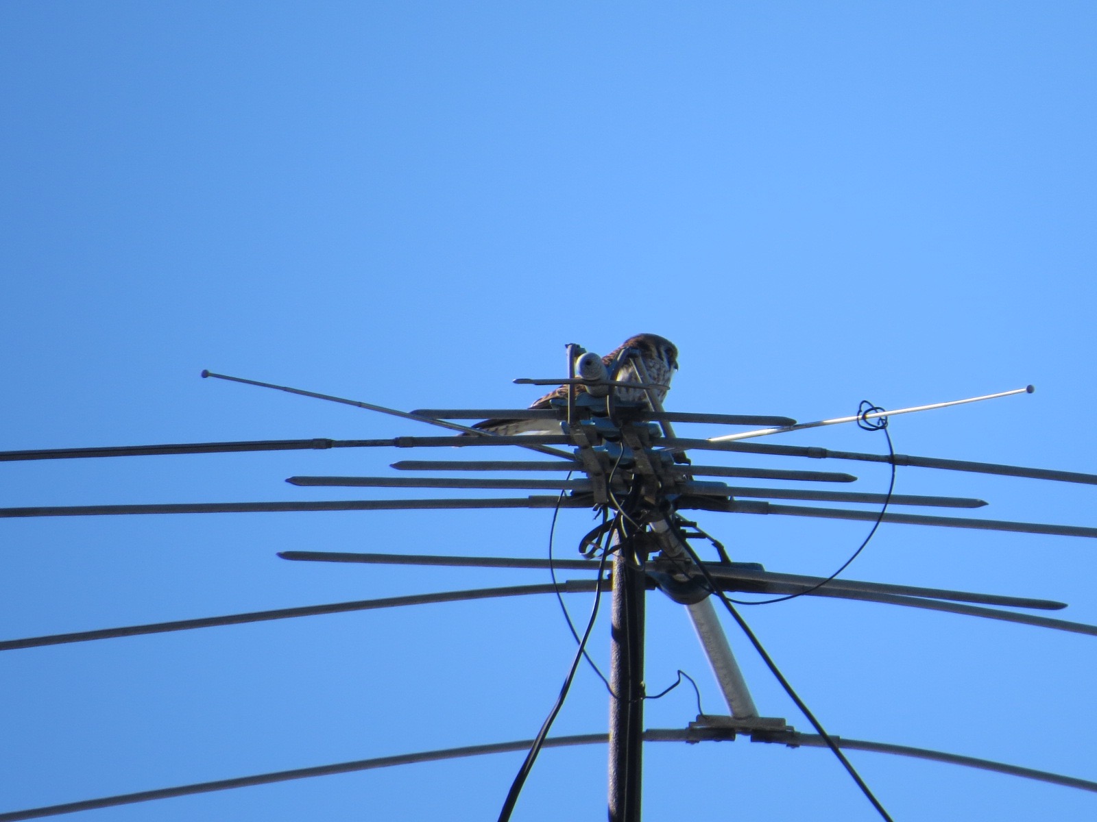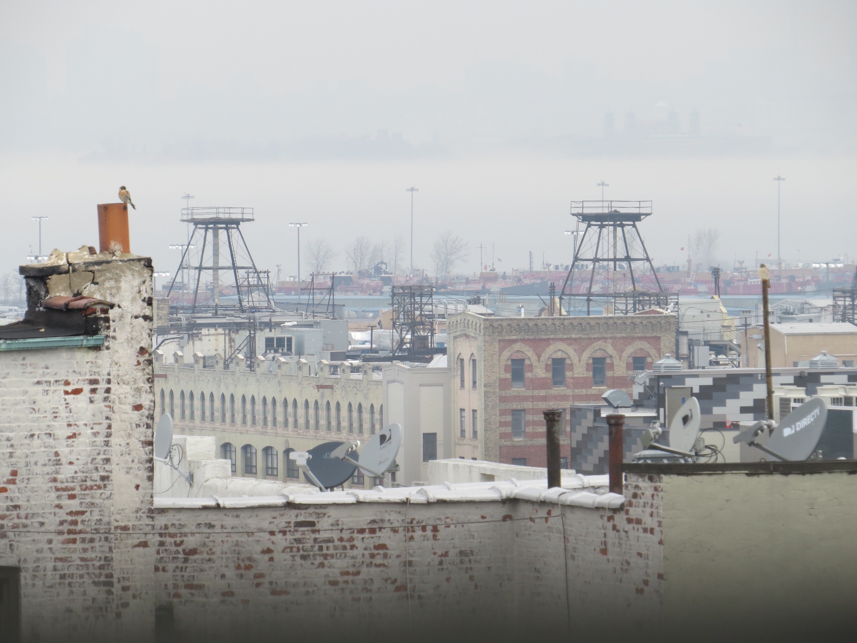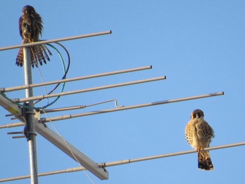 This was the first sign of a female Kestrel in the neighborhood. I first saw her January 13th. I’d been seeing males in Green-Wood, on Sunset Park High School, and on the 40th Street antenna, an elaborate, two-pronged structure used by a car service, since December.