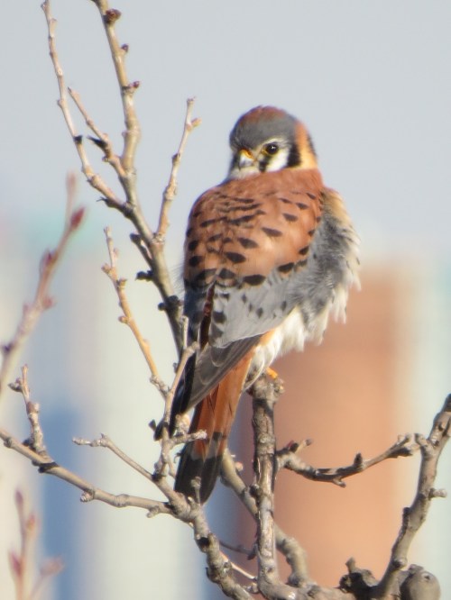 I’m physically closer to the church for this one because I hurried down the two avenue blocks to confirm the sighting. I hadn’t seen Kestrels up here much before this year. Now I do frequently. Two have now been spotted up there together. One day, I saw one up there while a pair was virtually right across the street from me, so I wonder if there are, in fact, two pairs in the area. At the moment, there are definitely a minimum of two males and one female around.