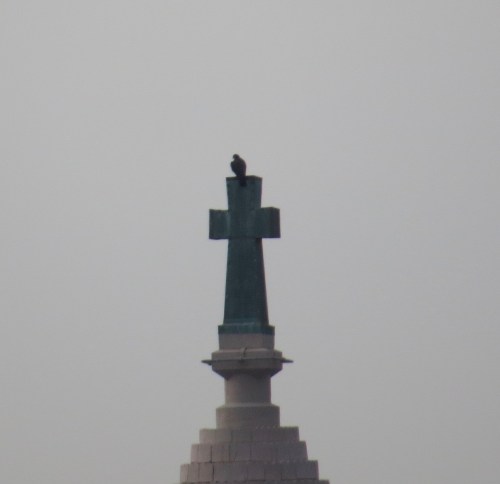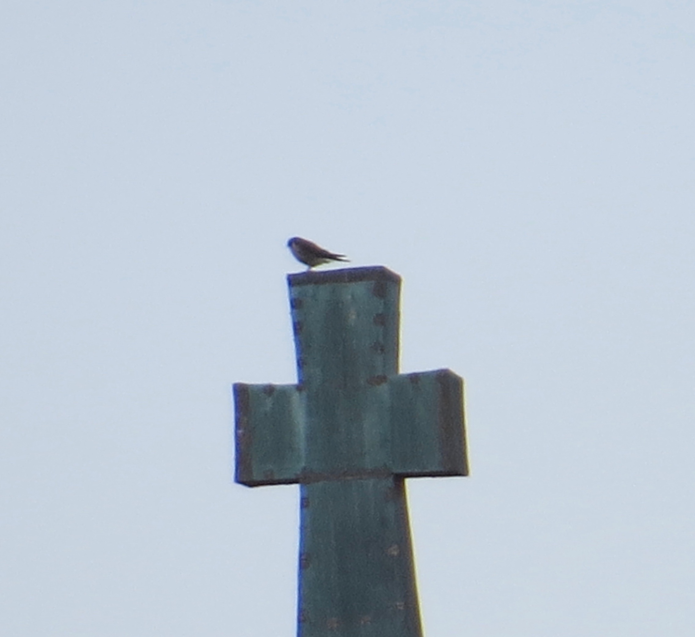 I’m physically closer to the church for this one because I hurried down the two avenue blocks to confirm the sighting. I hadn’t seen Kestrels up here much before this year. Now I do frequently. Two have now been spotted up there together. One day, I saw one up there while a pair was virtually right across the street from me, so I wonder if there are, in fact, two pairs in the area. At the moment, there are definitely a minimum of two males and one female around.