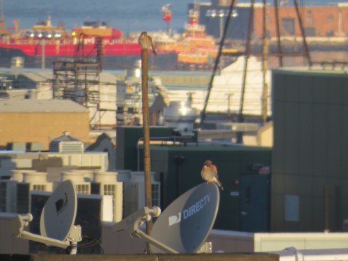 There’s plenty I can’t see my from Kestrel lookout, however. The other day, I saw one plucking something, probably a House Sparrow, on an antenna on 38th Street, as I walked down to the subway stop at 36th Street.