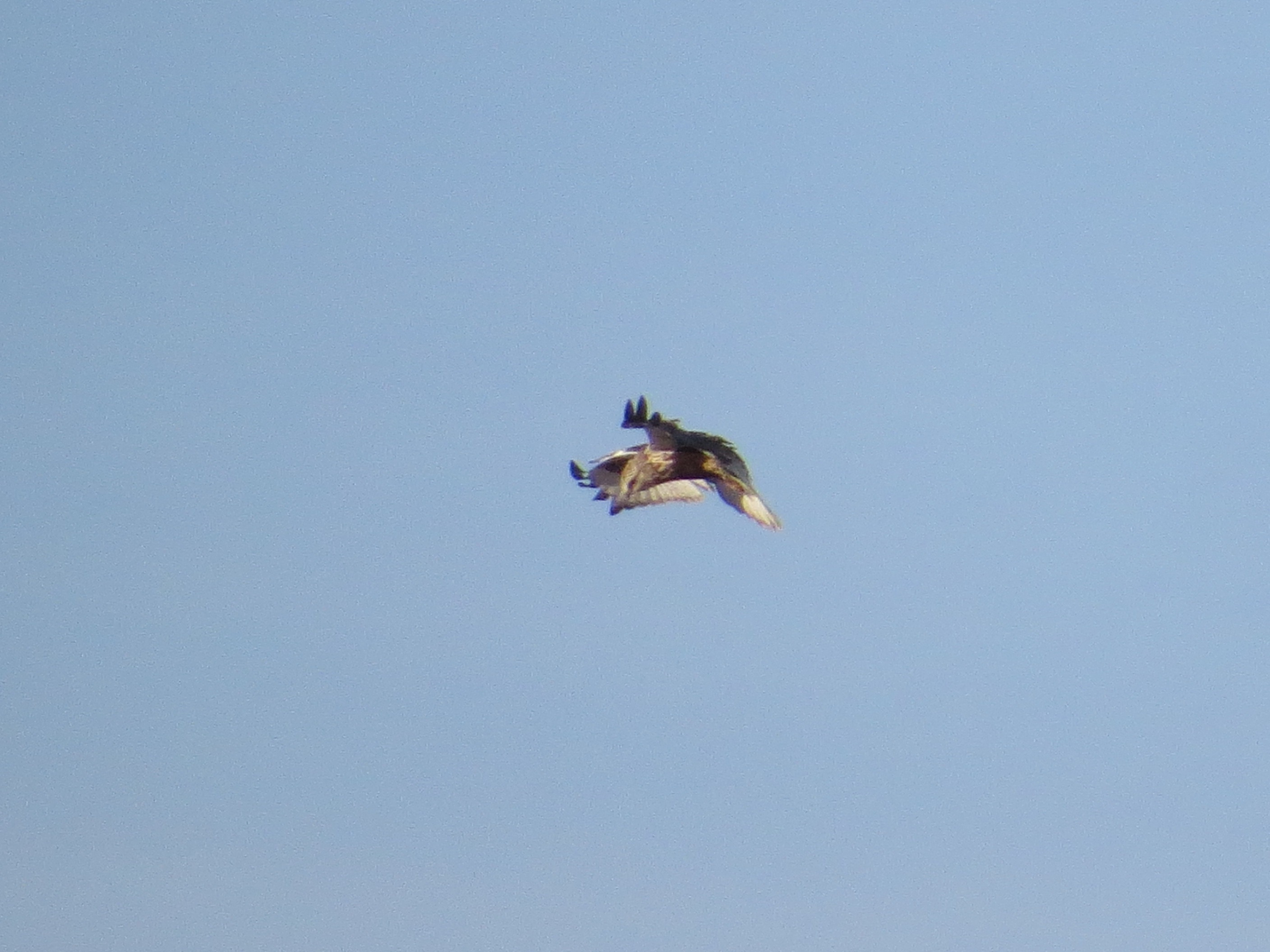 But they got going. These hawks (Buteo lagopus) are bigger than Red-tailed Hawks, yet they hover like Kestrels with their eyes focused on the ground for prey.