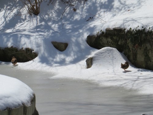 Reports from around the city tallied dozens of dazed and confused and probably hungry birds. March is when they migrate. They seem to have been blind-sided by the storm. The Wild Bird Fund had 35 of them in the other day. I saw one snagged by a Red-tailed Hawk, and heard of another being so captured, as well as one being jumped by the Prospect Park Goshawk.