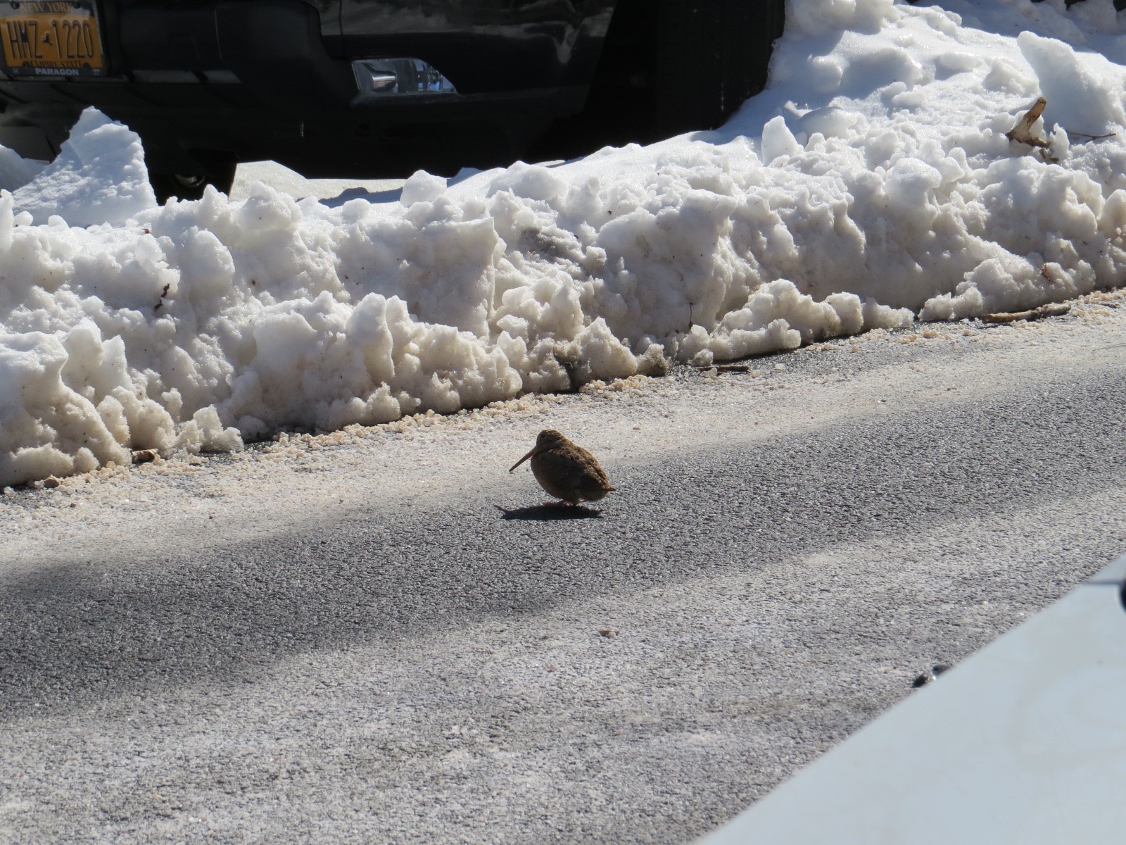 Reports from around the city tallied dozens of dazed and confused and probably hungry birds. March is when they migrate. They seem to have been blind-sided by the storm. The Wild Bird Fund had 35 of them in the other day. I saw one snagged by a Red-tailed Hawk, and heard of another being so captured, as well as one being jumped by the Prospect Park Goshawk.