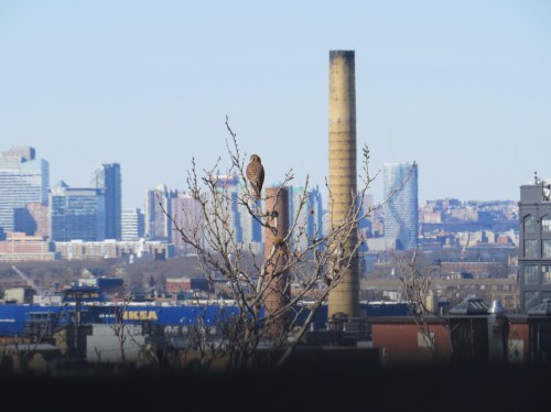 By the time I got outside, the bird had flown, but as I descended the moraine towards 5th Avenue, I caught sight of her again. Now the sun was on her.