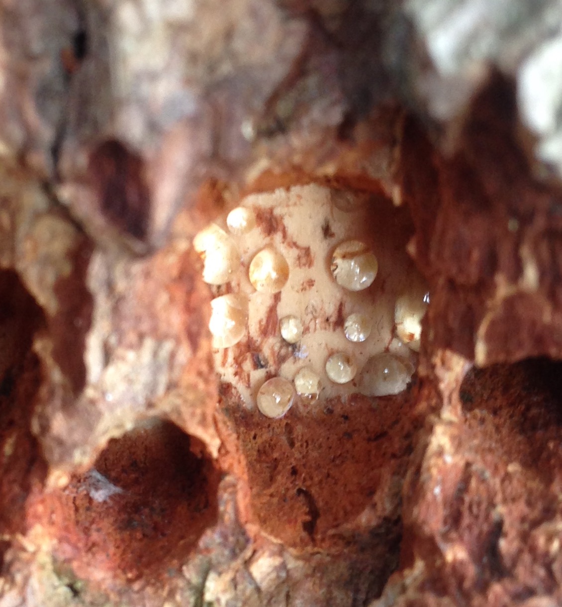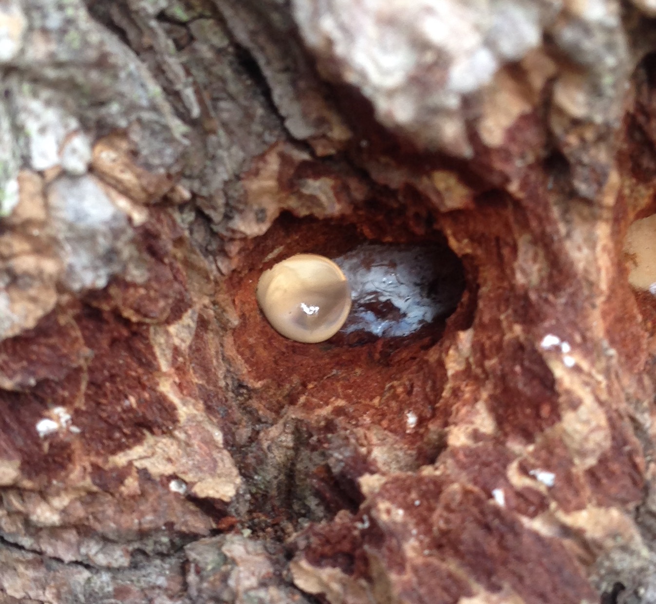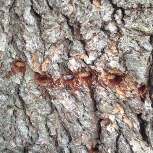 A line of sapsucker holes. About 3/4″ deep, through the bark.