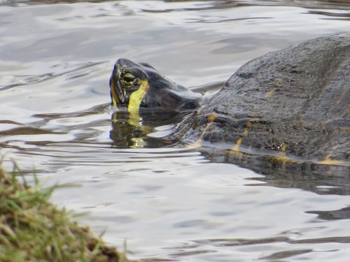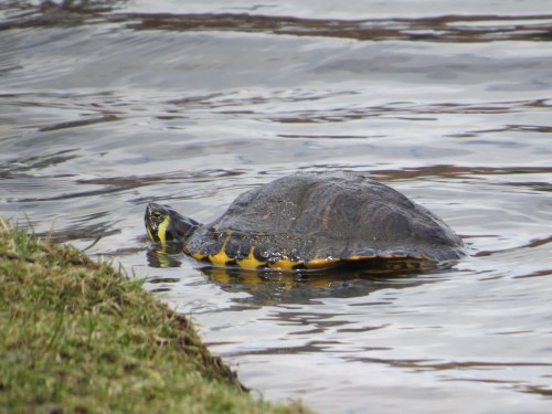 On a 40F day, a single turtle is observed on the edge of the Sylvan Water. What’s this, though? Not a Red-eared Slider (Trachemys scripta elegans), by far the most common turtle across the city. I once counted 70 basking along the Lullwater in Prospect Park.