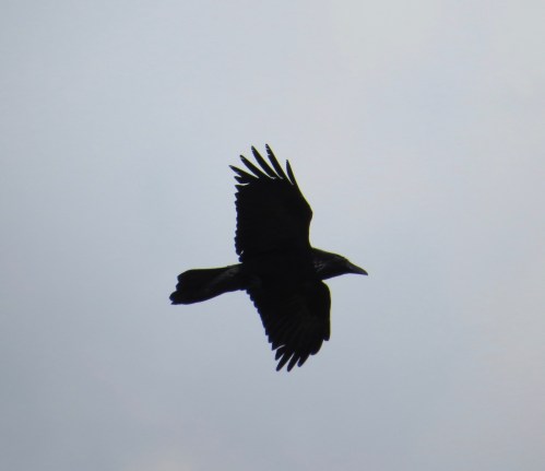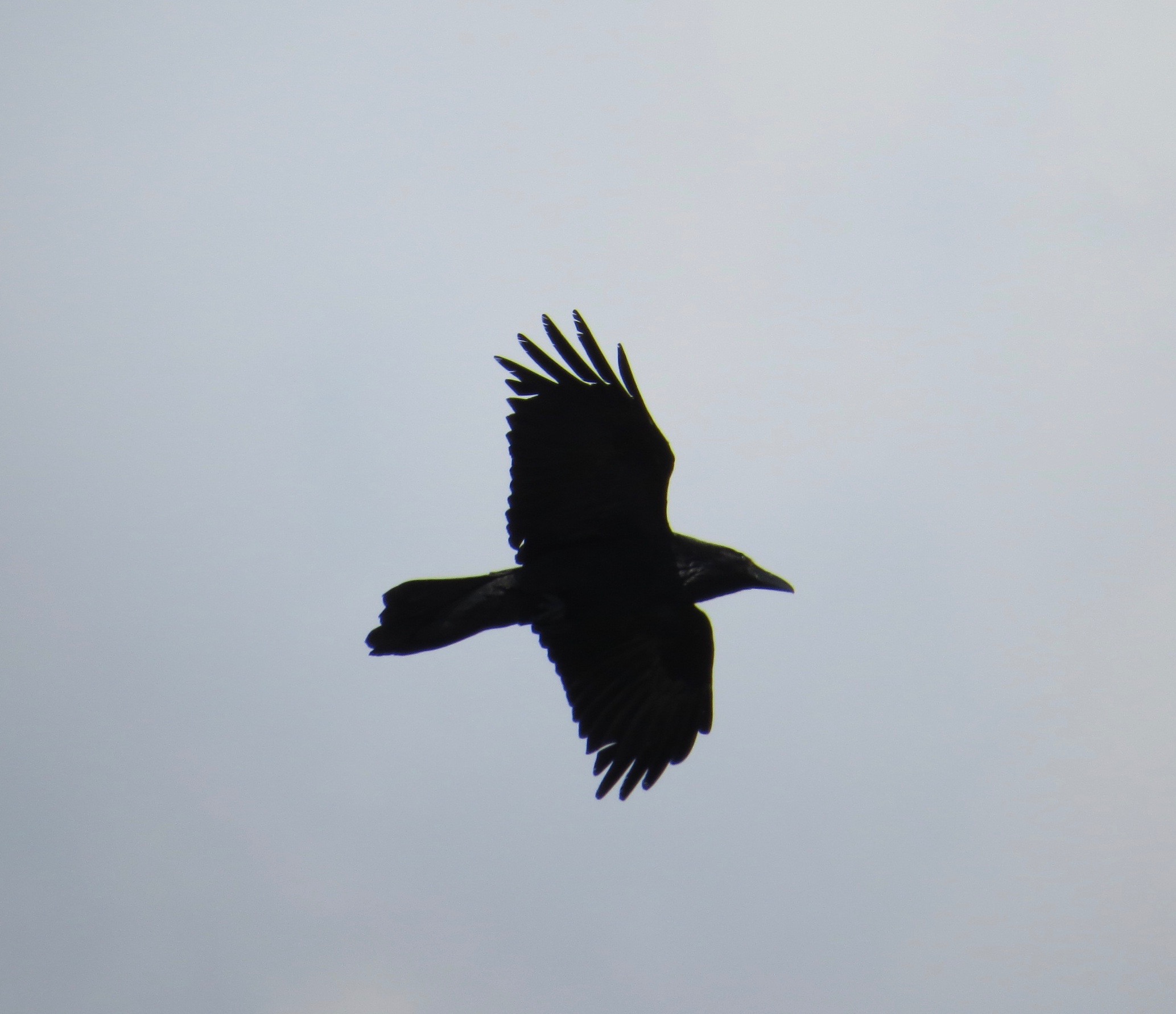 I heard the raven’s wings. The bird flew right overhead, close enough for me to hear the work of those great wings.