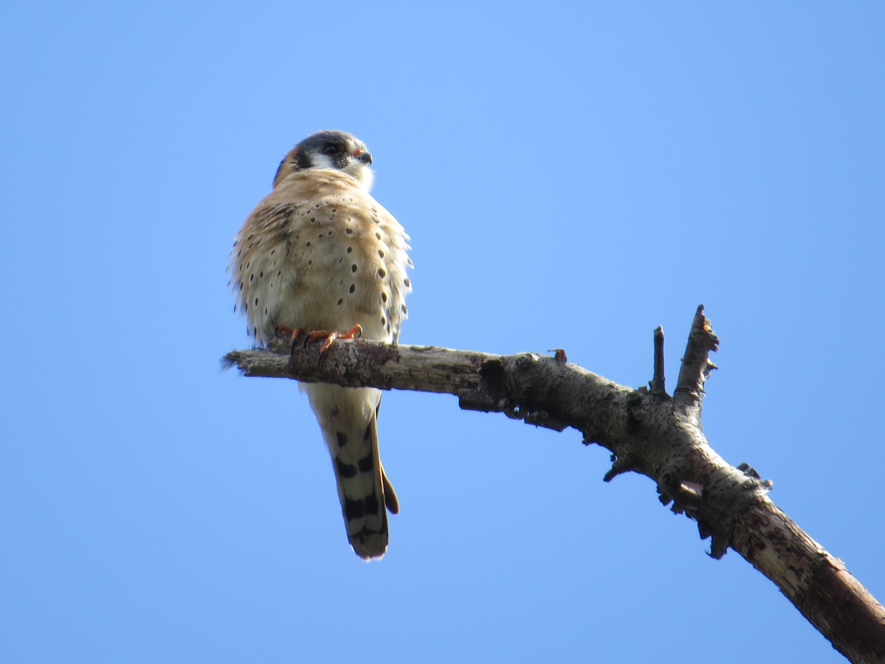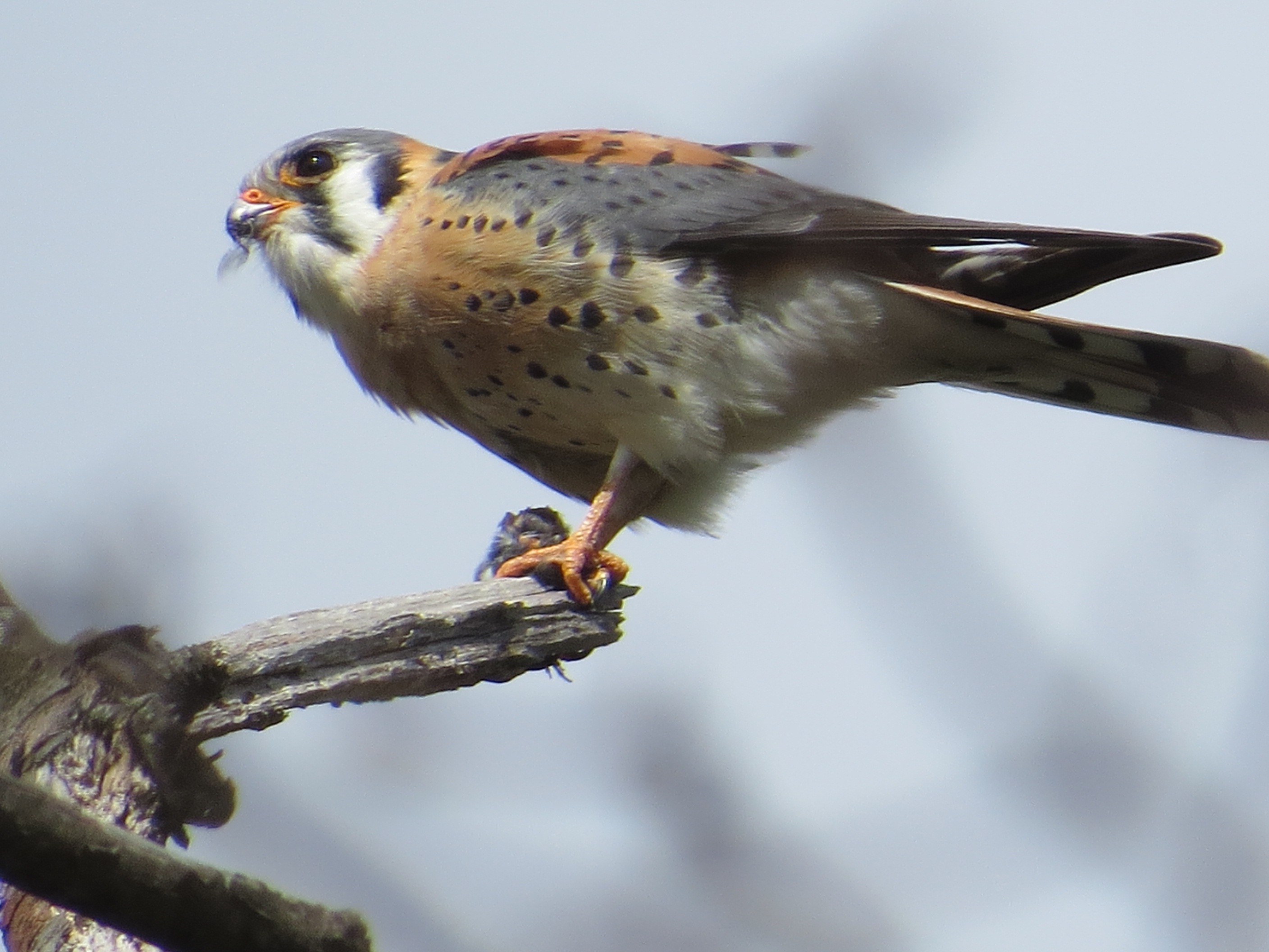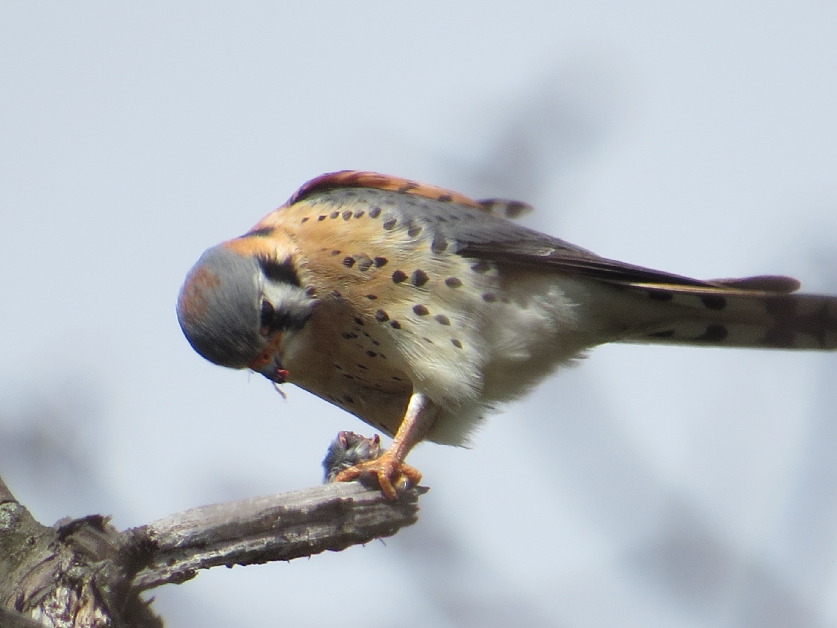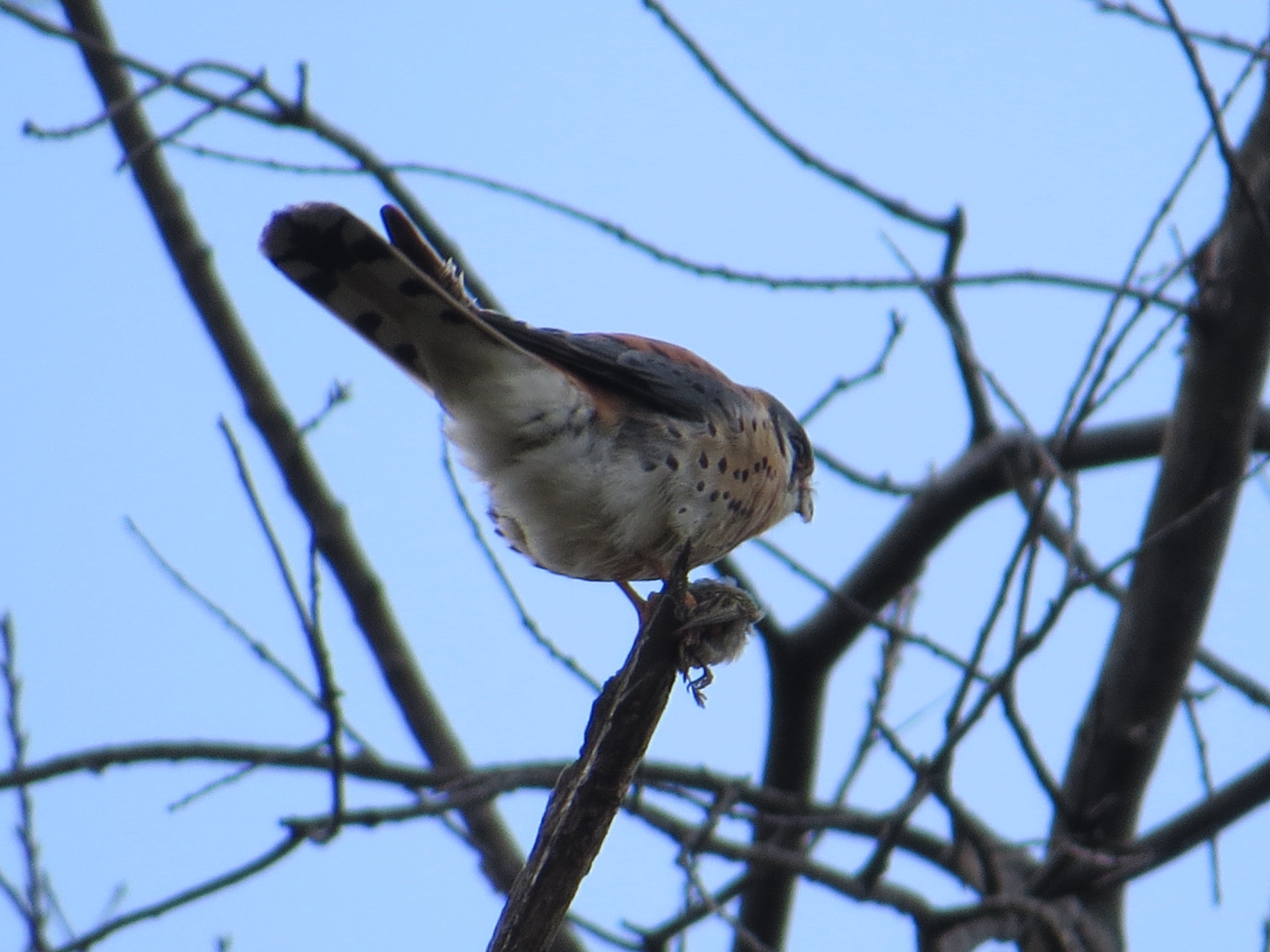 And the kestrel zoomed by me right after that, heading up to this perch, where he rather quickly devoured the prey.