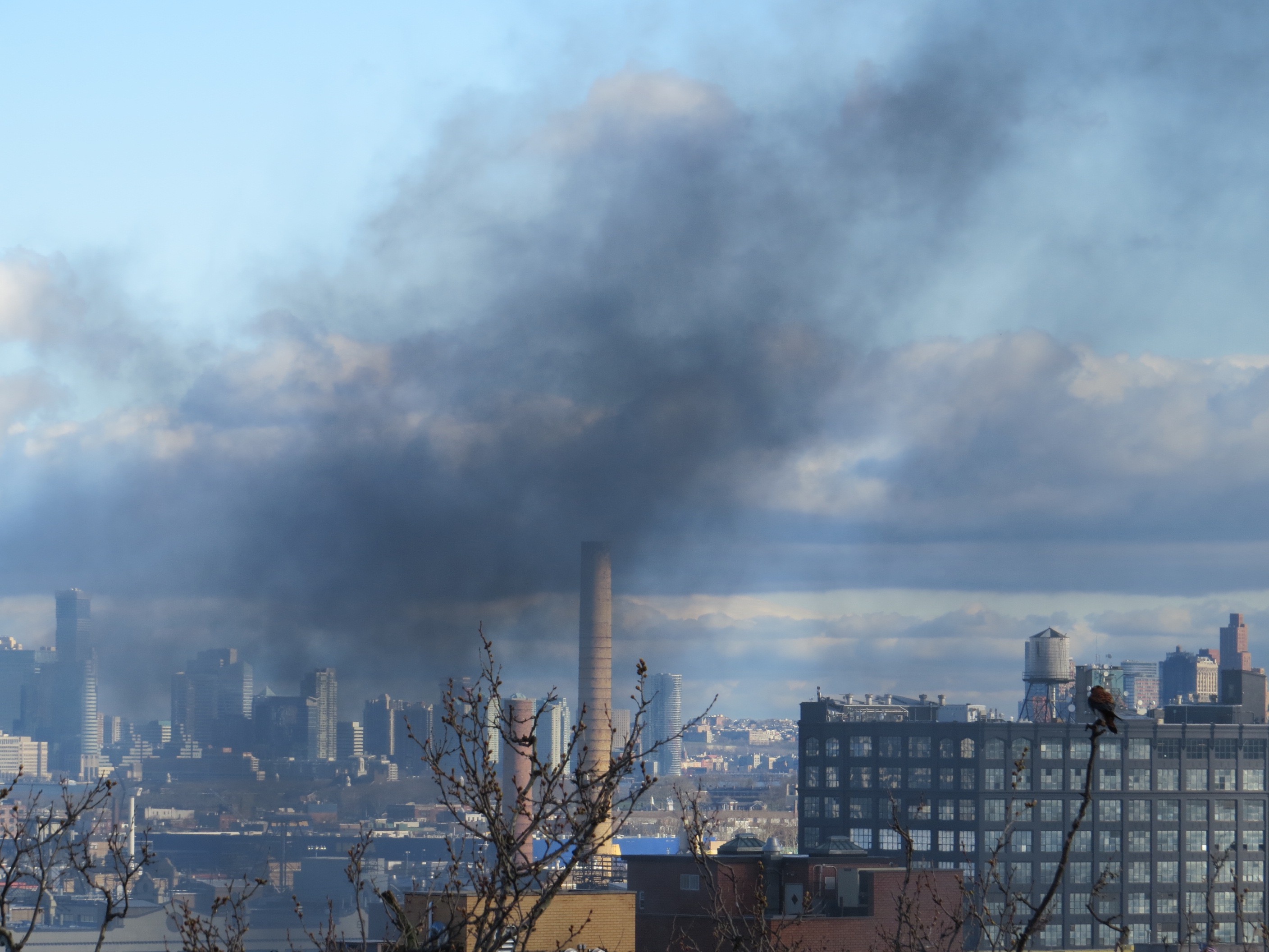 On Thursday morning, there was a small fire on 5th Avenue. The smoke streamed by in the distance. Perched male on the right.