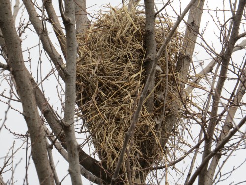 Why, it’s Passer domesticus, of course. The House Sparrow. Usually stuffed into a hole in a building, or, better yet, a stop light pole, this tornado of dried grasses is generally invisible.