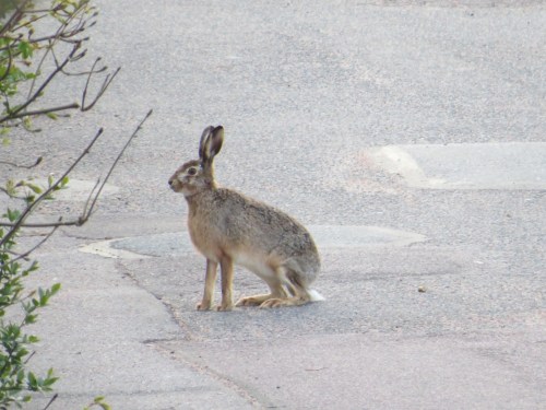 This European or Brown Hare (Lepus europaeus) was as big as most of the dogs in Göteborg. We were surprised to see it on a backstreet one evening. I think some of the locals were, too. The species has been expanding its range in Sweden.