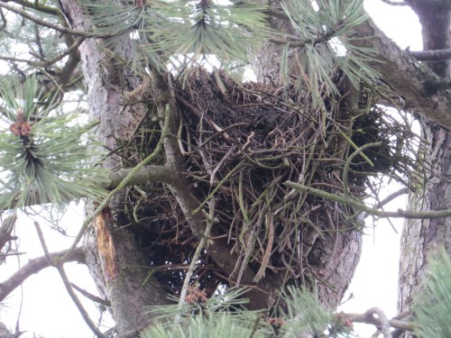 We — my British birding co-conspirators and I — think this is a Chaffinch nest. Note all that moss and lichen; looks rather like a hummingbird’s nest, but much larger, of course.