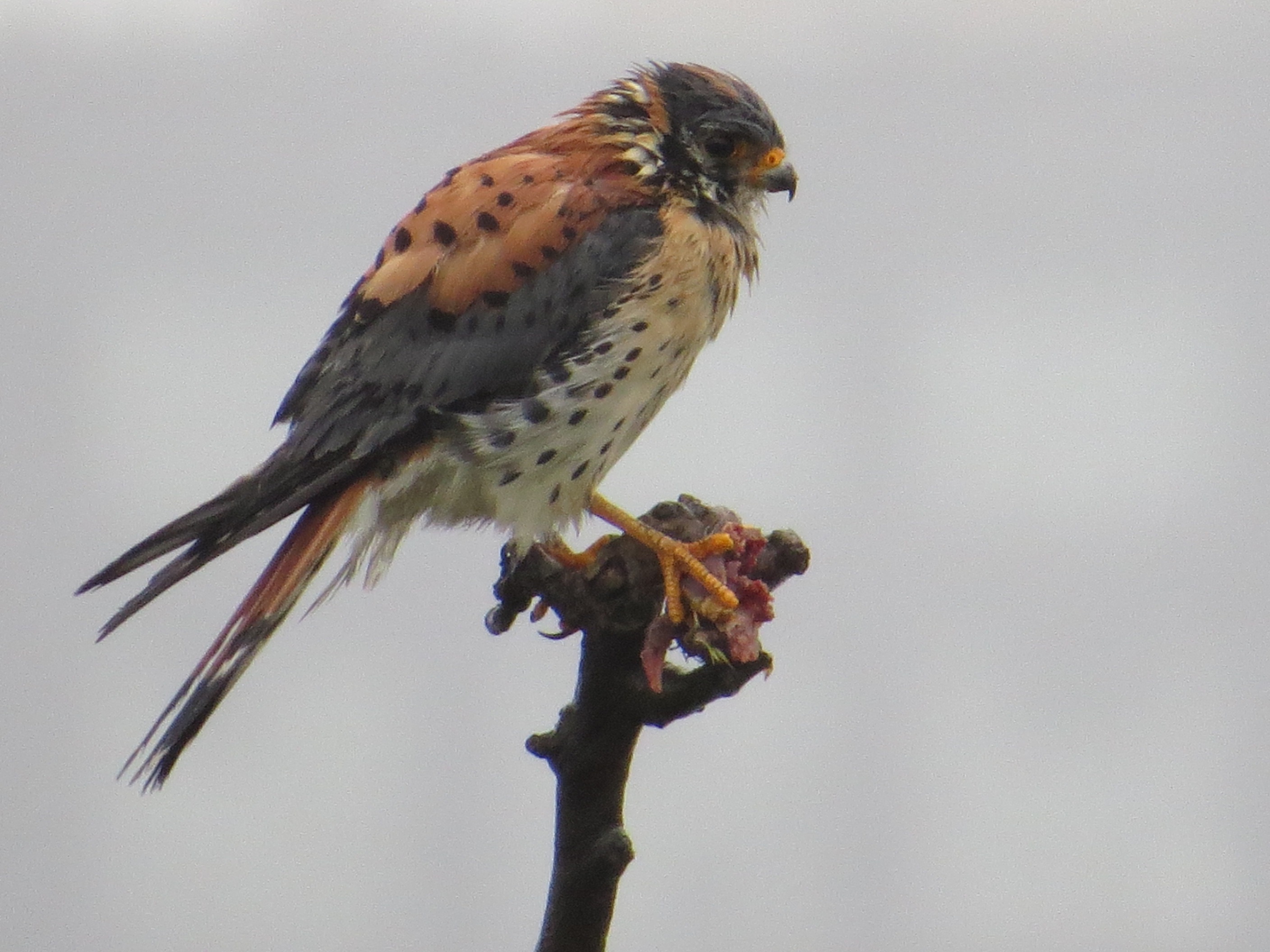Except for one rodent, the food list for these falcons has been all birds, as far as I have seen. In season, American Kestrels are said to be great devourers of dragonflies, and other insects, so we shall see what we shall see shortly.