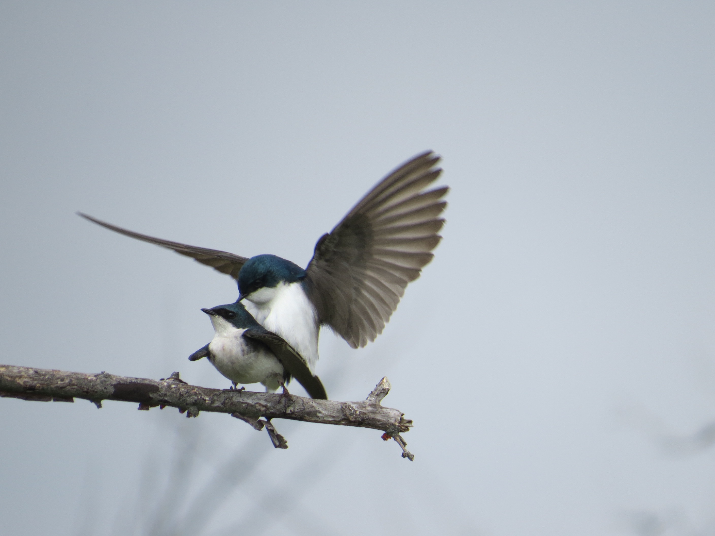The problem is staying on. Remember how the male American Kestrel bunched up his claws so not to dig into his partner’s back? Here, the male bites some head feathers. Ouch!