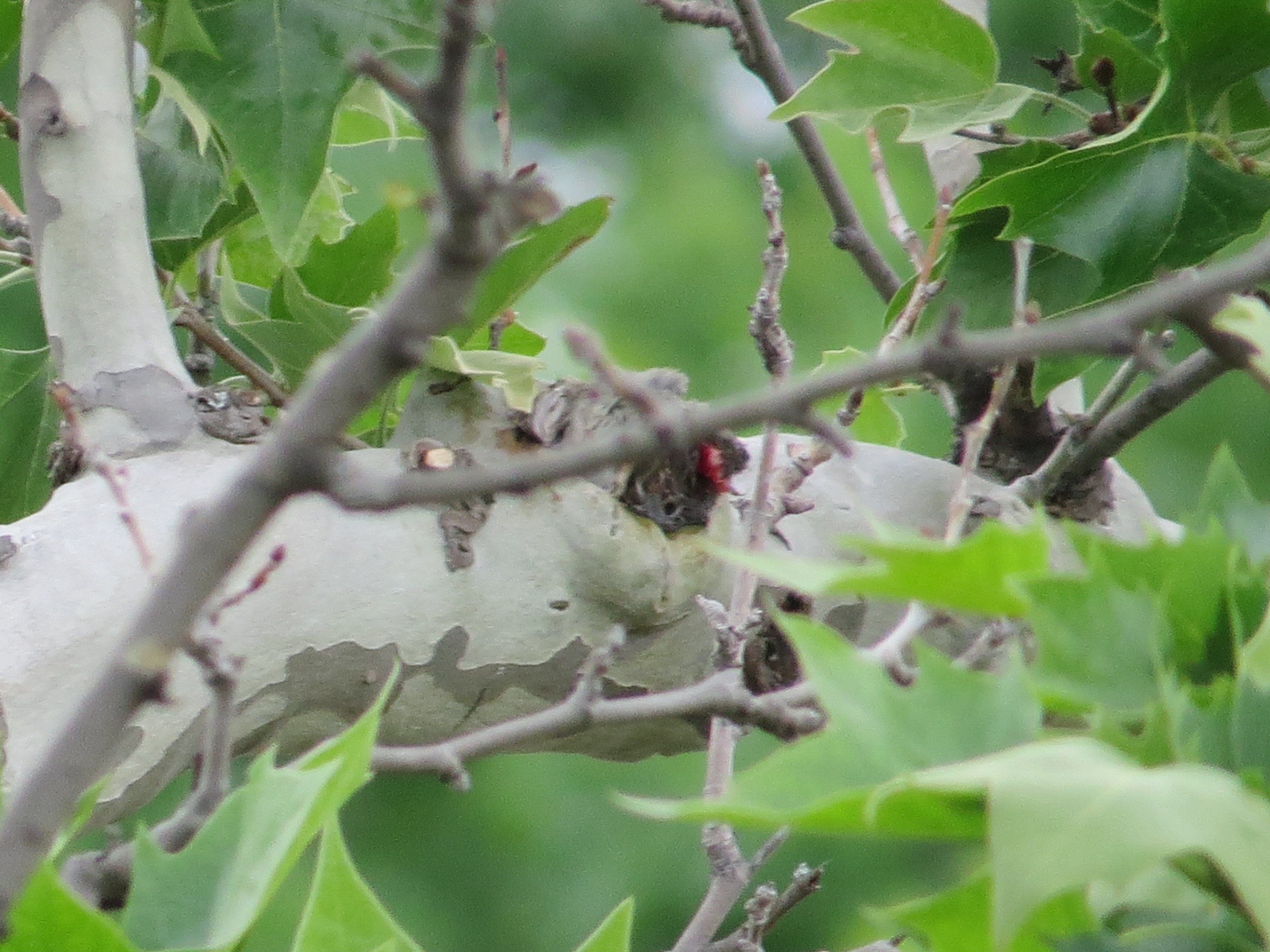 He took this out, munched on it, and put it back. More recently, one of the crows was on this branch, so I think its cover is blown.