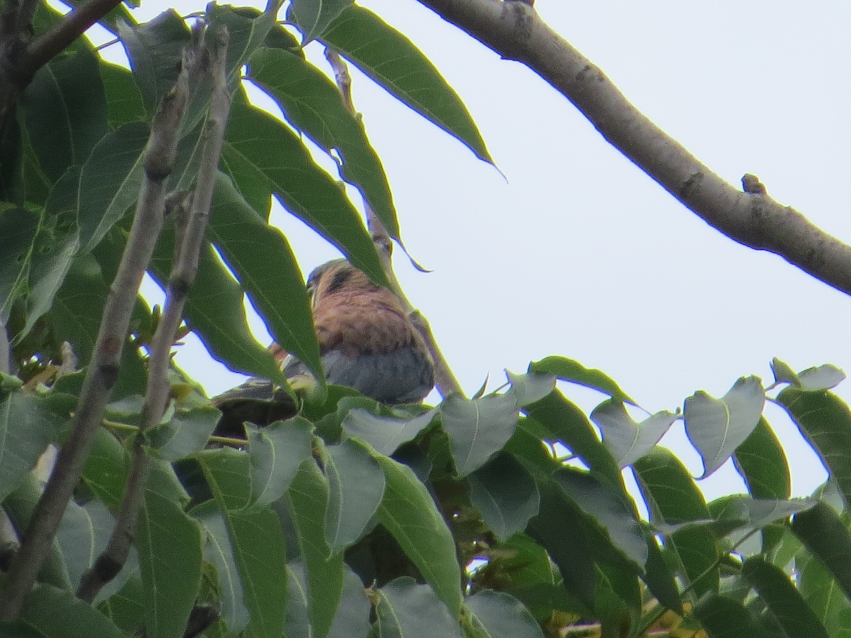 There was a male in the ailanthus in the backyard as well. Not sure if it was the same one. Yes, another ailanthus. This is the fabled tree that grows in Brooklyn (backyards). Very convenient for the fledglings at this nest and for the ones on our corner (which is approximately 1.75 miles to the south of this nest).