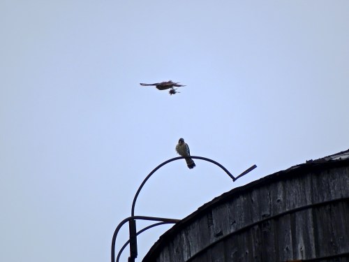 And reproduce. This is a surprise to me: these adults are copulating again with some regularity, in between providing their young with prey. Are they attempting a second brood? I think that would be rather unusual. I’ve not seen this behavior with our local #BrooklynKestrels.