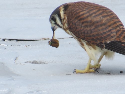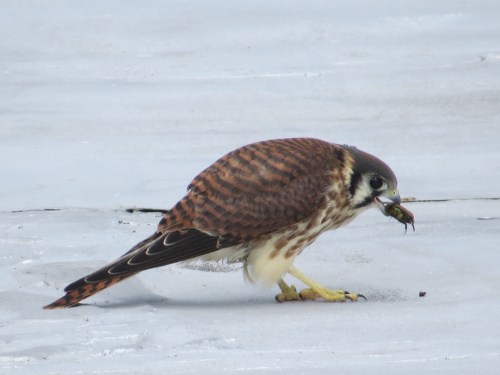 Five #BrooklynKestrels outside the window can be overwhelming, even though I’ve never seen more than four at a time. The young ones don’t perch as long as the adults, at least not that I’ve seen. They’re much more, uh, flighty. This is one of the two female fledglings.