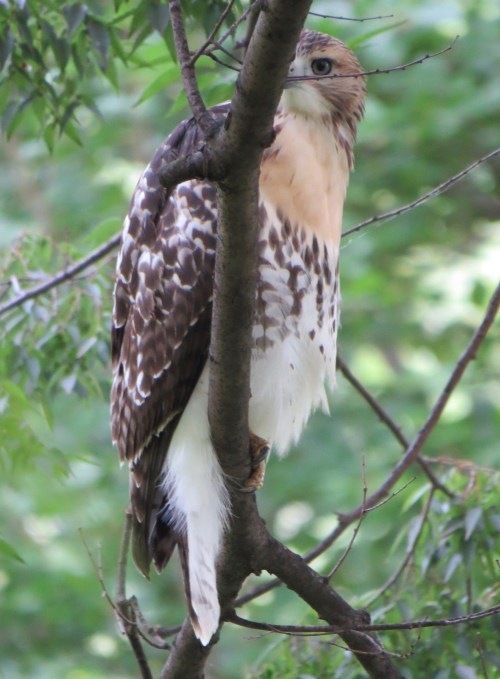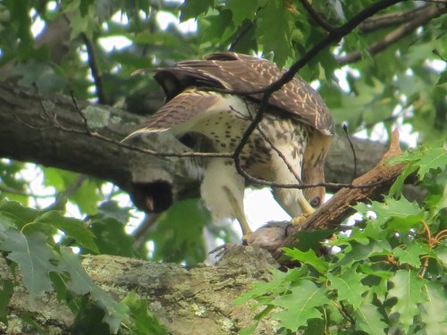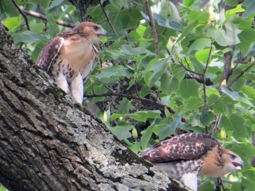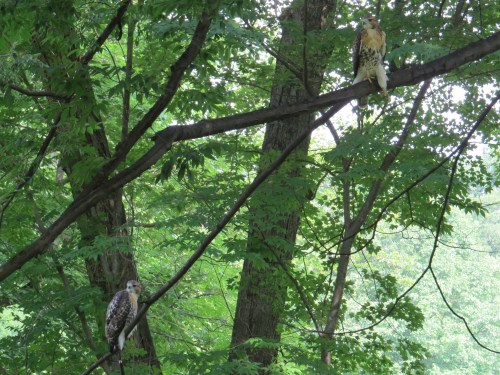 At least one parent was nearby, harried by Blue Jay and Eastern Kingbird. Interestingly, the song birds did not go after the young hawks.