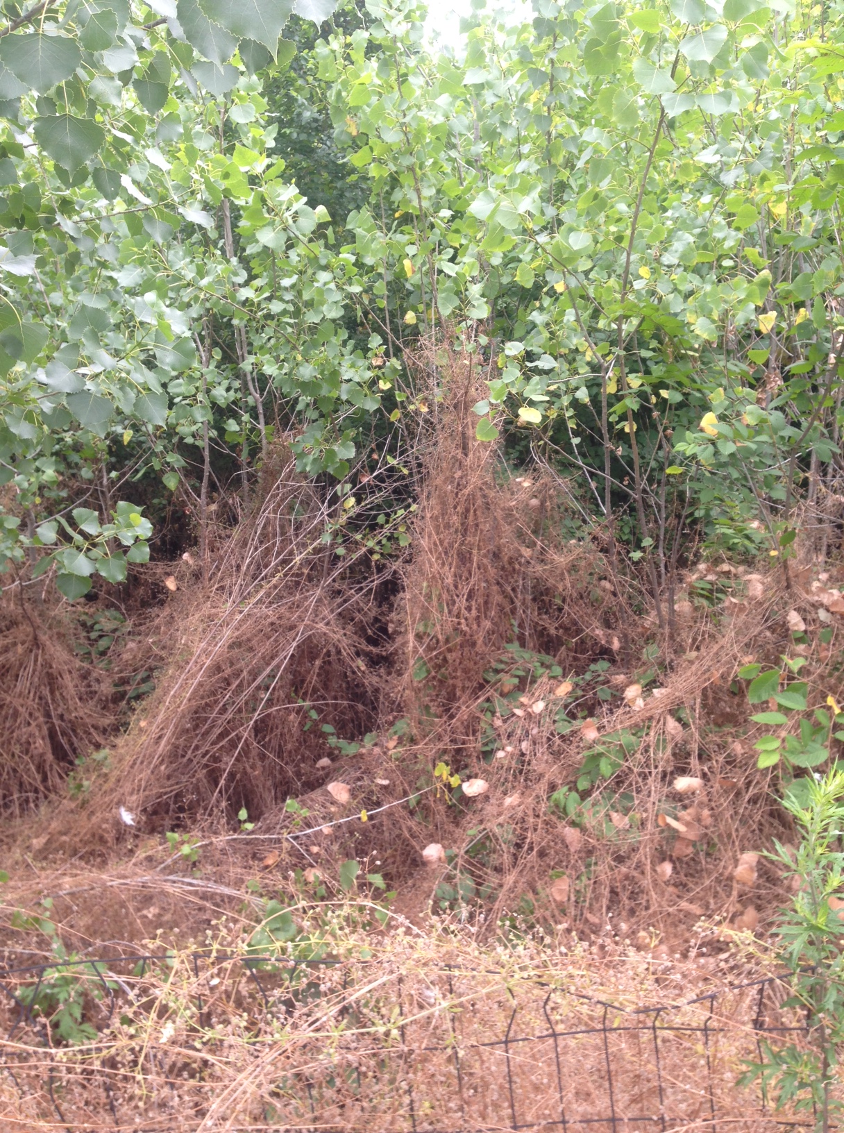 a hundred yards away is a serious thicket of Cottonwood. The species is a very prolific seed disperser. The understory here is now practically a wall of Cottonwood saplings (along with some kind of bedstraw). Won’t this just continue to spread out into the wetlands and necessitate continued applications of poison? What’s the end game here?
